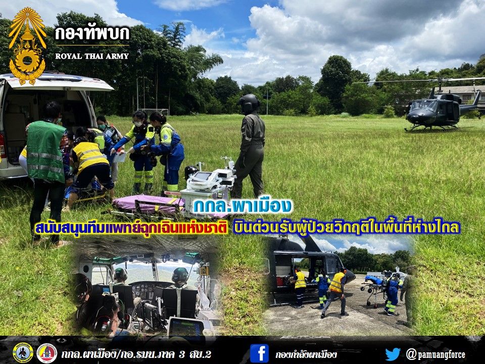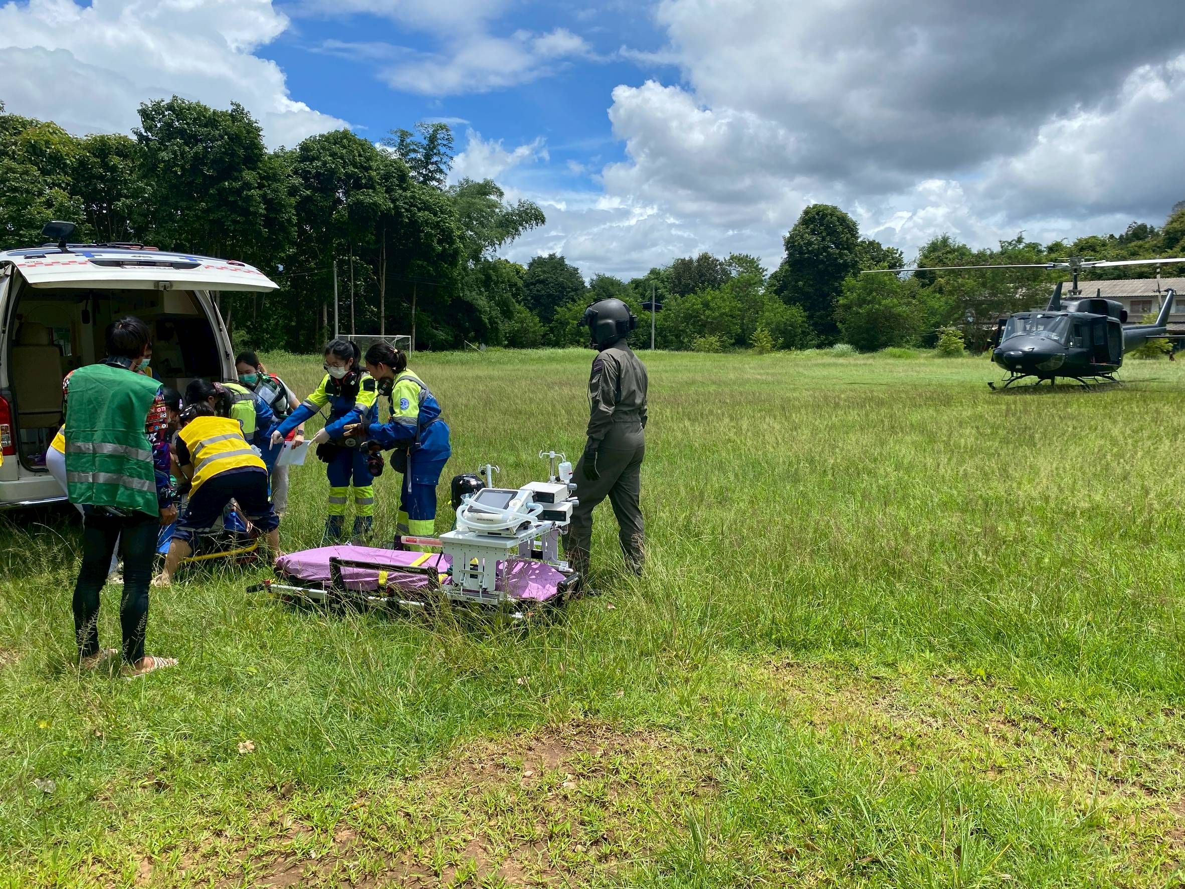 กกล.ผาเมือง สนับสนุนทีมแพทย์ฉุกเฉินแห่งชาติ บินด่วนรับผู้ป่วยฉุกเฉินพื้นที่เวียงแหงฯ