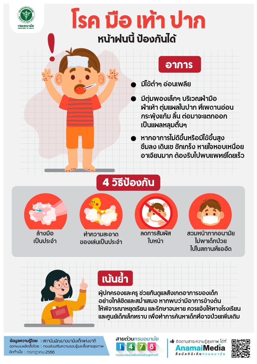 จากข้อมูลของกรมควบคุมโรค กระทรวงสาธารณสุข พบว่า โรคมือเท้าปาก ซึ่งเป็นหนึ่งในโรคที่พบการระบาดเพิ่มขึ้นในช่วงฤดูฝนของทุกปี โดยเฉพาะในกลุ่มเด็กเล็กอายุต่ำกว่า 5 ปี โรคนี้เกิดจากเชื้อไวรัสหลากหลายสายพันธุ์ ได้แก่ เอ็นเทอโรไวรัส คอกแซคกี้ไวรัส เอ็กโคไวรัส ในกรณีที่มีอาการรุนแรง เช่น อาการสมองอักเสบ หรือกล้ามเนื้อหัวใจอักเสบ ซึ่งเป็นสาเหตุสำคัญอาจทำให้เด็กเสียชีวิต มักเกิดจากเชื้อเอ็นเทอโรไวรัส 71 (Enterovirus 71) มักพบการระบาดในศูนย์พัฒนาเด็กเล็ก สถานรับเลี้ยงเด็กชุมชน โรงเรียน และในชุมชน การแพร่เชื้อเกิดได้จากการสัมผัสสารคัดหลั่งของผู้ป่วย เช่น น้ำลาย น้ำมูก หรือน้ำตุ่มพองจากแผลของผู้ป่วย ซึ่งเชื้อไวรัสสามารถปนเปื้อนอยู่บนของเล่น เสื้อผ้า ภาชนะที่ใช้ร่วมกัน และพื้นผิวที่มีการสัมผัสบ่อย เช่น ลูกบิดประตูหรือราวจับ สาเหตุที่พบการระบาดในกลุ่มเด็กเล็ก เนื่องจากเด็กวัยนี้มักชอบเล่นของเล่นร่วมกัน หยิบของเข้าปาก หรือใช้มือจับปาก จมูก ตา ทำให้เชื้อโรคเข้าสู่ร่างกายได้ง่าย