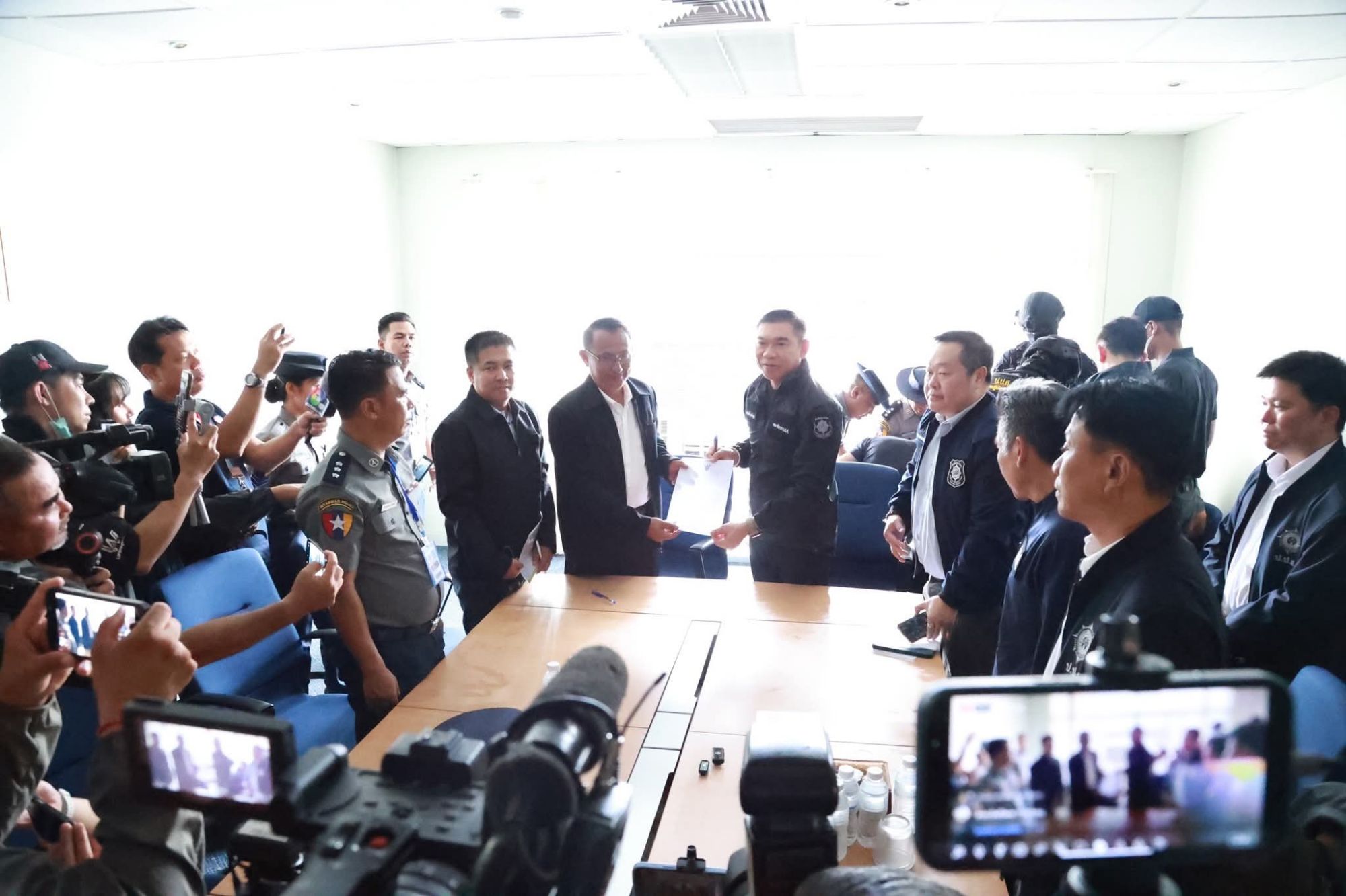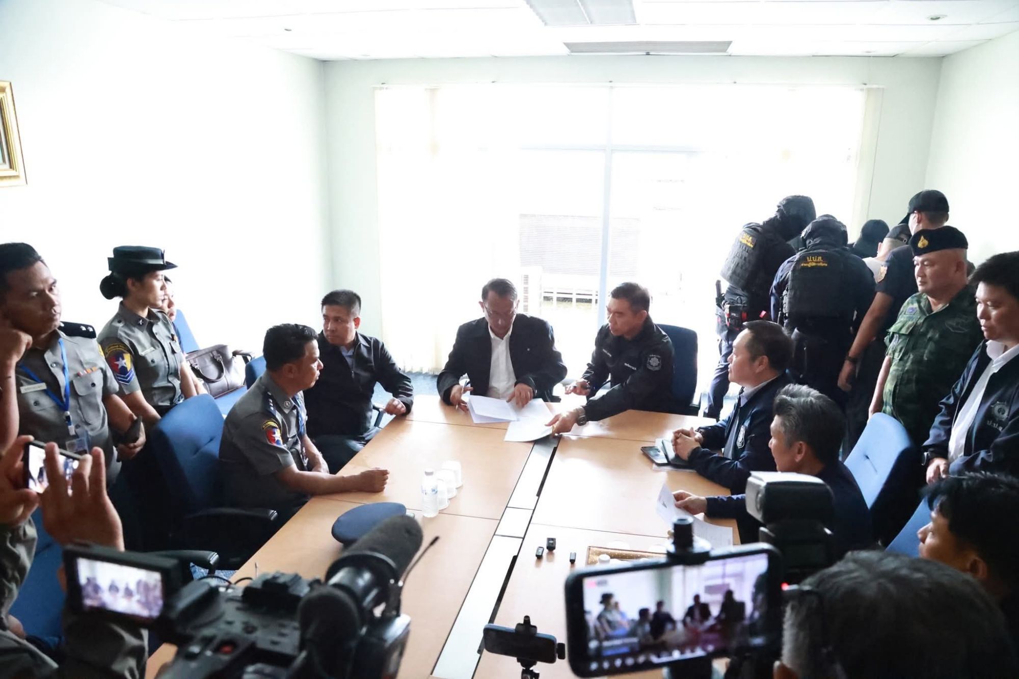 เมื่อวันที่ 16 กรกฎาคม 2568 พล.ต.ท.ภาณุรัตน์ หลักบุญ เลขาธิการ ป.ป.ส. พร้อมด้วย นายประสงค์ หล้าอ่อน รองผู้ว่าราชการจังหวัดเชียงราย นายอภิกิต ฉ.โรจน์ประเสริฐ รองเลขาธิการ ป.ป.ส. นายปฤณ เมฆานันท์ ผู้อำนวยการสำนักปราบปรามยาเสพติด สำนักงาน ป.ป.ส. พล.ต.ต.มานพ เสนากูล ผู้บังคับการตำรวจภูธรจังหวัดเชียงราย พ.อ.ไพโรจน์ ยะวิญญชาญ ผู้แทนจาก นบ.ยส.35 พ.อ.ไมตรี ศรีสันเทียะ เสนาธิการ กองกำลังผาเมือง พ.ต.อ.สุรศักดิ์ เทียนทอง ผู้กำกับการตรวจคนเข้าเมืองจังหวัดเชียงราย นายอภิชาติ ใจงาม นายด่านศุลกากรแม่สาย พ.อ.ปริญญา วีระศรีนารา หัวหน้าศูนย์ข่าวยาเสพติด ฝ่ายข่าวศูนย์ปฏิบัติการกองทัพบก และคณะ นำกำลังชุดปฏิบัติการพิเศษ อินทรีย์ 19 เดินทางไปรับมอบตัว ผู้ต้องหาตามหมายจับ จำนวน 2 ราย ประกอบด้วย นายเตชินท์ หน่อวงค์ และ นายฉมัง กันทวงค์ เป็นนักค้ายาเสพติดข้ามชาติรายสำคัญในระดับผู้สั่งการ หลังจากถูกออกหมายจับในคดียาเสพติด ได้ร่วมกันหลบหนีไปอาศัยอยู่ที่ จ.ท่าขี้เหล็ก เมียนมา จาก สำนักงานคณะกรรมการเพื่อการควบคุมยาเสพติด (Central Committee for Drug Abuse Control : CCDAC) สาธารณรัฐแห่งสหภาพเมียนมา นำโดย Police Brigadier General Thant Lwin Maung, Joint Secretary of the Central Committee for Drug Abuse Control Commander of Drug Enforcement Division ณ สะพานมิตรภาพแห่งที่ 2 (แม่สาย – ท่าขี้เหล็ก) จ.เชียงราย