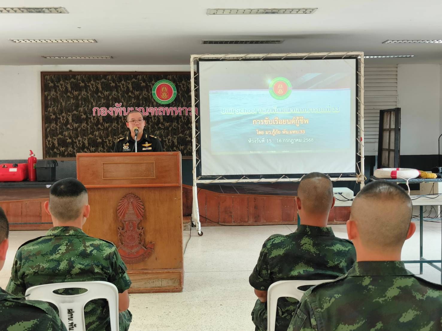 การเรียนการสอนภายในหน่วย (Unit School) “การขับเรือยนต์กู้ชีพ พัน.มทบ.33”