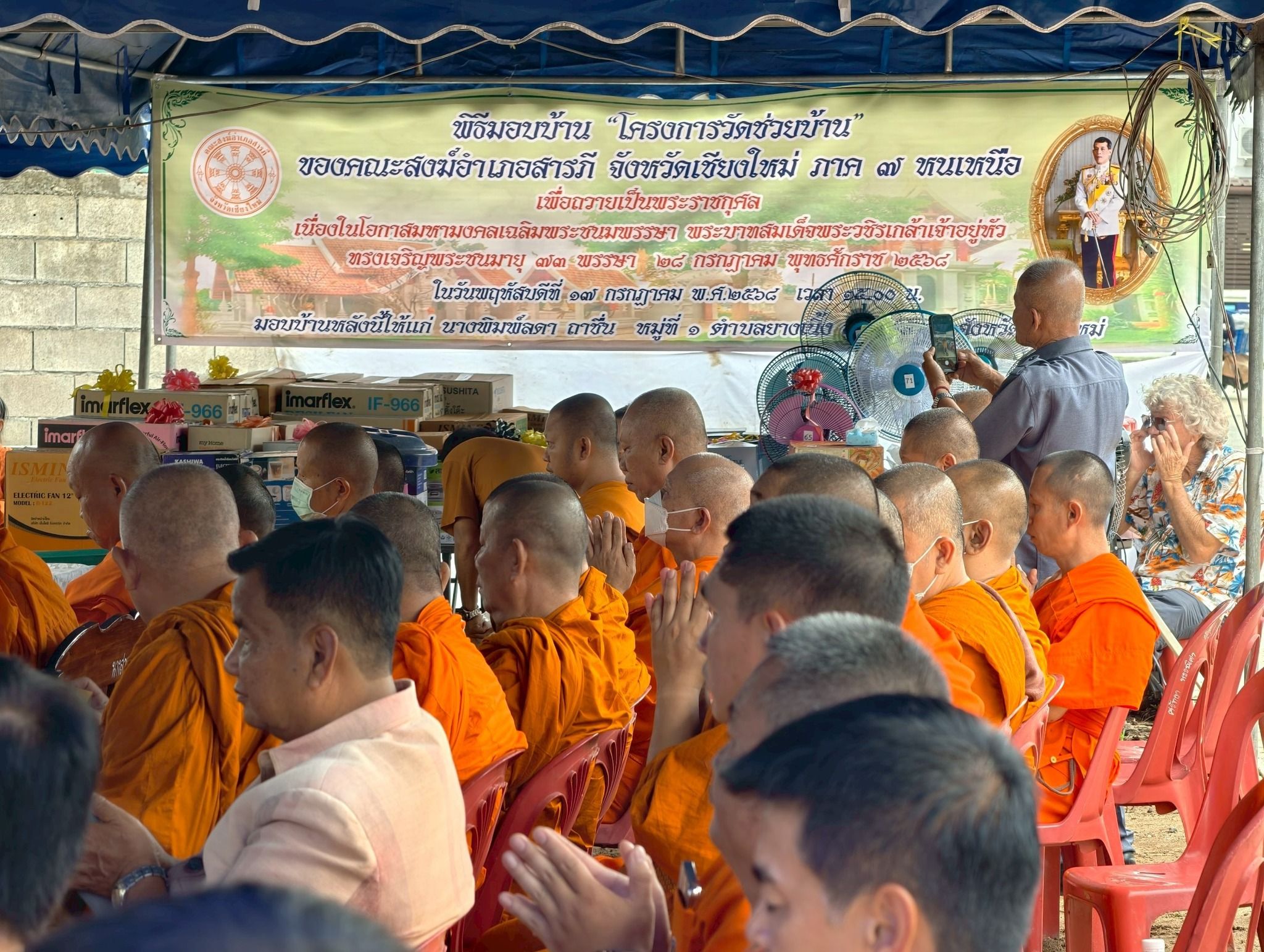 เมื่อวันที่ 17 กรกฎาคม 2568 เวลา 15.00 น. คณะสงฆ์อำเภอสารภี นำโดย พระครูสาทรกิจโกศล เจ้าคณะอำเภอสารภี เจ้าอาวาสวัดสารภี ประธานฝ่ายสงฆ์ นายวรุตม์ วิศิษฏ์ศิลป์ นายอำเภอสารภี มอบหมายให้ นายนพรัตน์ จันทะอินทร์ ปลัดอาวุโส ประธานฝ่ายฆราวาส พิธีมอบบ้าน “โครงการวัดช่วยบ้าน” ประจำปี ๒๕๖๘ เพื่อช่วยเหลือ อนุเคราะห์ สงเคราะห์ ประชาชนที่มีที่อยู่อาศัยยากจน ตามหลักเกณท์ เพื่อถวายเป็นพระราชกุศล เนื่องในโอกาสมหามงคลเฉลิมพระชนมพรรษา พระบาทสมเด็จพระวชิรเกล้าเจ้าอยู่หัว ทรงเจริญพระชนมายุ ๗๓ พรรษา ทางคณะกรรมการโครงการ มีมติในการปรับปรุงบ้านของ นางพิมพ์ลดา ถาชื่น หมู่ที่ 1 ตำบลยางเนิ้ง อำเภอสารภี จังหวัดเชียงใหม่ ได้ดำเนินการสร้างเป็นที่เรียบร้อย มีพิธีเจริญพุทธมนต์ทำบุญบ้านละมอบบ้าน.