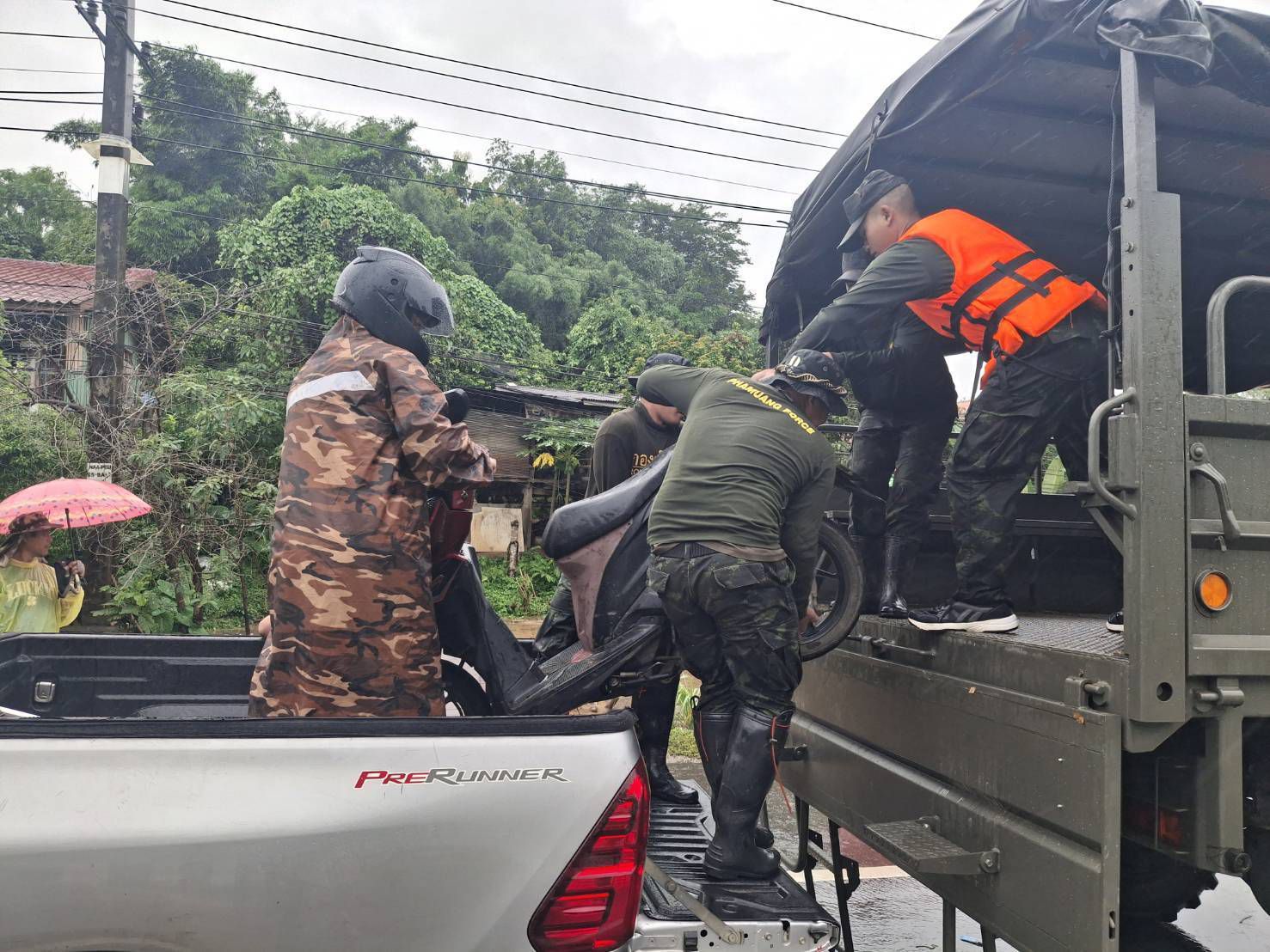 เมื่อวันที่ 23 ก.ค. 68 เวลา 16.00 น. พล.ต.บุญญฤทธิ์ เกษตรเวทิน ผบ.ศบภ. มทบ.38 ได้จัดกำลังพลชุดปฏิบัติการบรรเทาสาธารณภัย จาก มทบ.38 และ ม.2 พัน.10 นำรถยนต์ทางทหารลงพื้นที่ให้การช่วยเหลือประชาชน ณ จุดบ้านห้วยยื่น ตำบลบ่อ อำเภอเมืองน่าน จังหวัดน่าน โดยได้อำนวยความสะดวกในการขนย้ายประชาชนและยานพาหนะข้ามพื้นที่น้ำท่วม บริเวณเส้นทางสายหลัก น่าน–ท่าวังผา ซึ่งได้รับผลกระทบจากฝนตกหนักอย่างต่อเนื่อง ทำให้ระดับน้ำเพิ่มสูงและเส้นทางบางช่วงไม่สามารถสัญจรได้ตามปกติ การสนับสนุนรถทหารในครั้งนี้ช่วยให้ประชาชนสามารถเดินทางเข้า–ออกตัวเมืองน่านและอำเภอท่าวังผาได้อย่างปลอดภัยและต่อเนื่อง