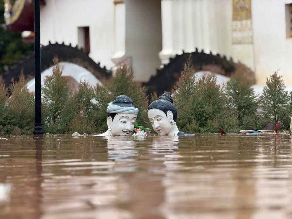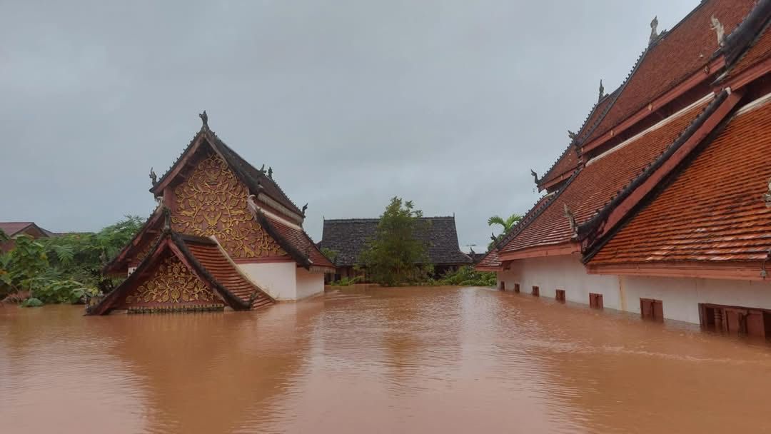 ขณะที่เช้านี้ 06.09 น. วันที่ 24 กรกฎาคม 2568 น้ำท่วมเข้าวิหารไทลื้อ “วัดหนองบัว” อำเภอท่าวังผา จังหวัดน่าน กระทบหนักภาพจิตรกรรมฝาผนังไทยลื้อที่งดงาม สมบูรณ์ที่สุด โดยตั้งแต่สร้างวิหารมาน้ำท่วมครั้งนี้รุนแรงที่สุดในประวัติศาสตร์ ในรอบ 200 ปี