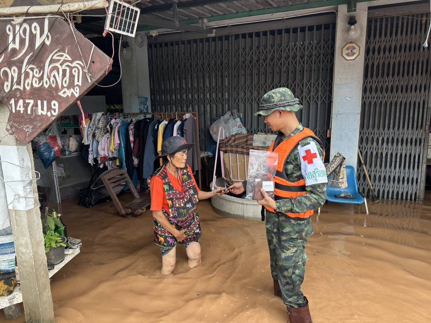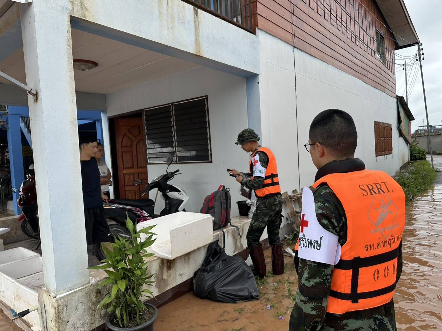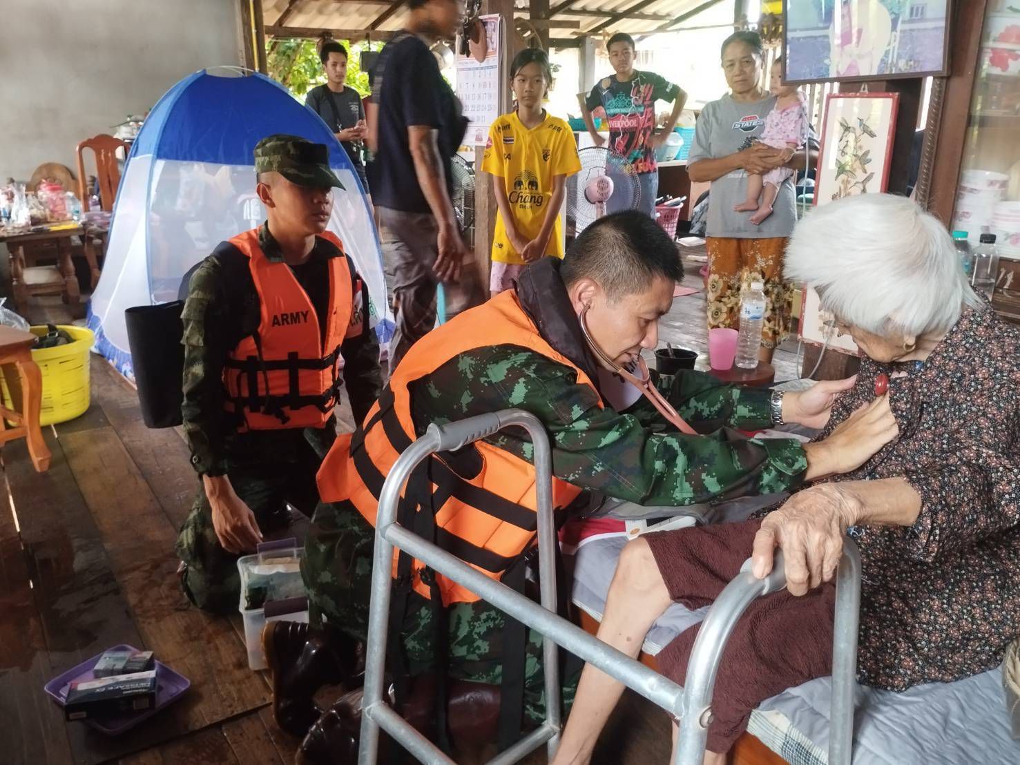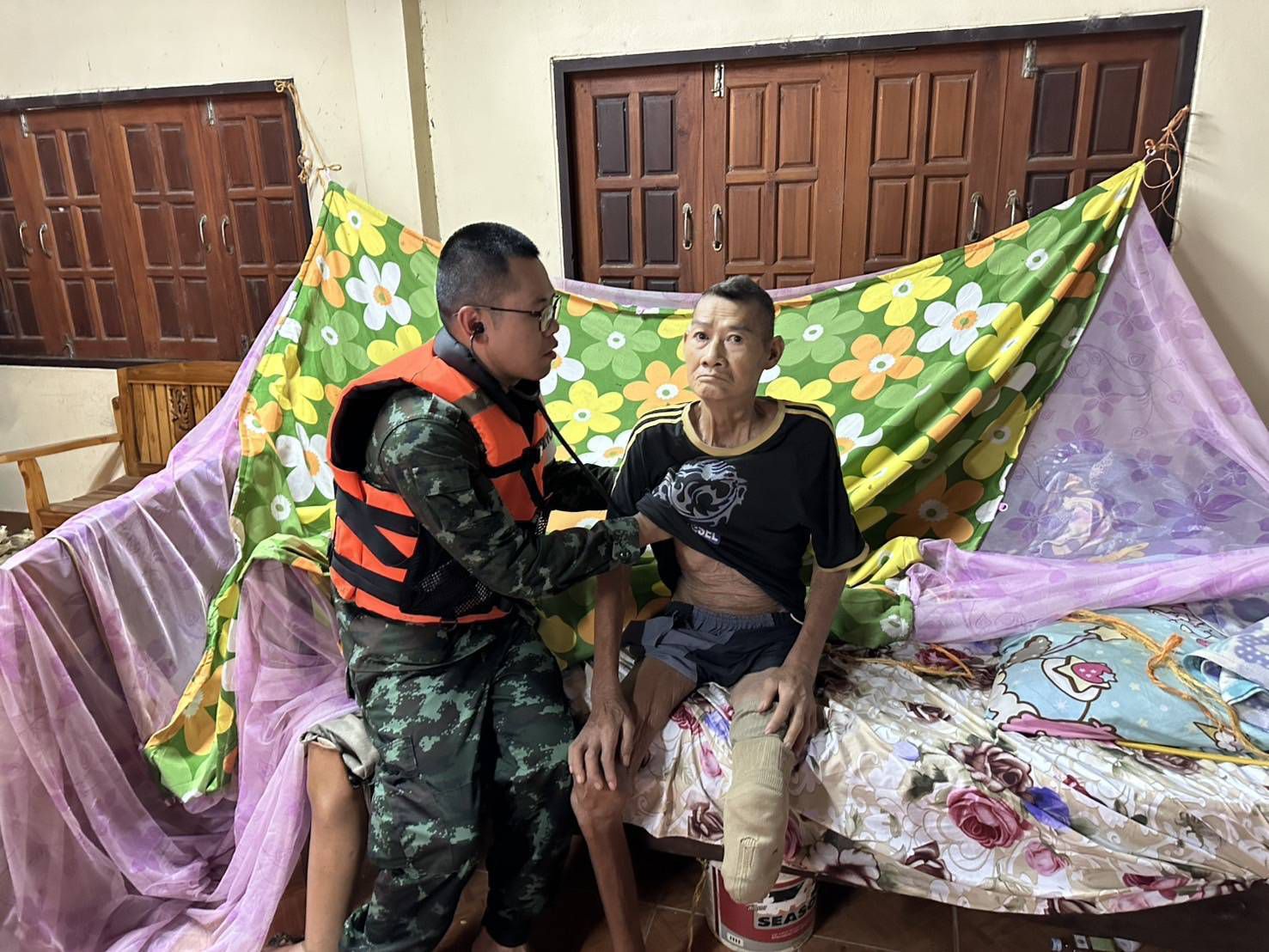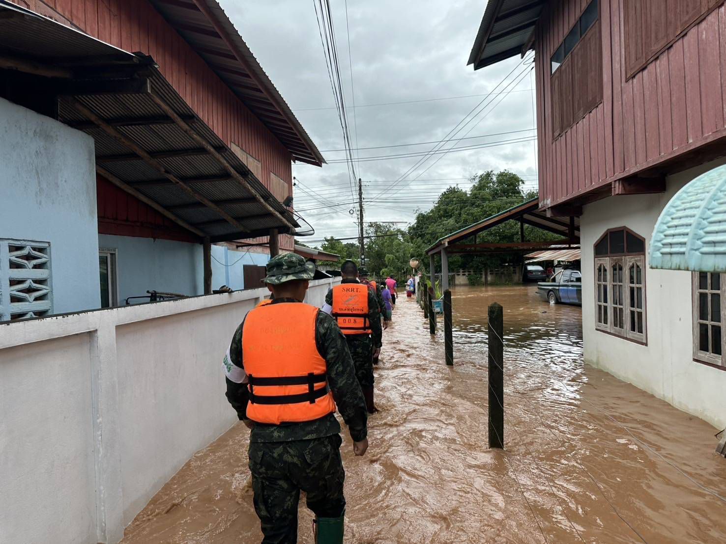 เมื่อวันที่ 24 กรกฎาคม 2568 พลตรี บุญญฤทธิ์ เกษตรเวทิน ผู้บัญชาการศูนย์บรรเทาสาธารณภัยมณฑลทหารบกที่ 38 จัดกำลังพลชุดแพทย์เดินเท้าช่วยเหลือพื้นที่ประสบอุทกภัย จาก โรงพยาบาลค่ายสุริยพงษ์ จำนวน 2 ชุด ประกอบด้วยแพทย์ นายสิบพยาบาล และพลทหารเสนารักษ์ ลงพื้นที่ให้ความช่วยเหลือประชาชนที่ได้รับผลกระทบจากอุทกภัยในพื้นที่หมู่บ้านน้ำต้วน และบ้านบุปผาราม อำเภอภูเพียง จังหวัดน่าน โดยชุดแพทย์ได้เดินเท้าลุยน้ำเข้าชุมชนที่ได้รับผลกระทบอย่างหนัก สำรวจบ้านผู้สูงอายุและผู้ป่วยติดเตียง พร้อมให้บริการตรวจวัดสัญญาณชีพเบื้องต้น สอบถามอาการเจ็บป่วย และแจกจ่ายยารักษาโรคเบื้องต้นให้แก่ผู้ที่มีอาการปวดเมื่อยกล้ามเนื้อ ผื่นคันจากน้ำสกปรก รวมถึงให้คำแนะนำในการดูแลสุขภาพตนเอง เพื่อป้องกันโรคที่มากับน้ำท่วม เช่น โรคผิวหนัง น้ำกัดเท้า และโรคติดต่อในระบบทางเดินอาหาร
