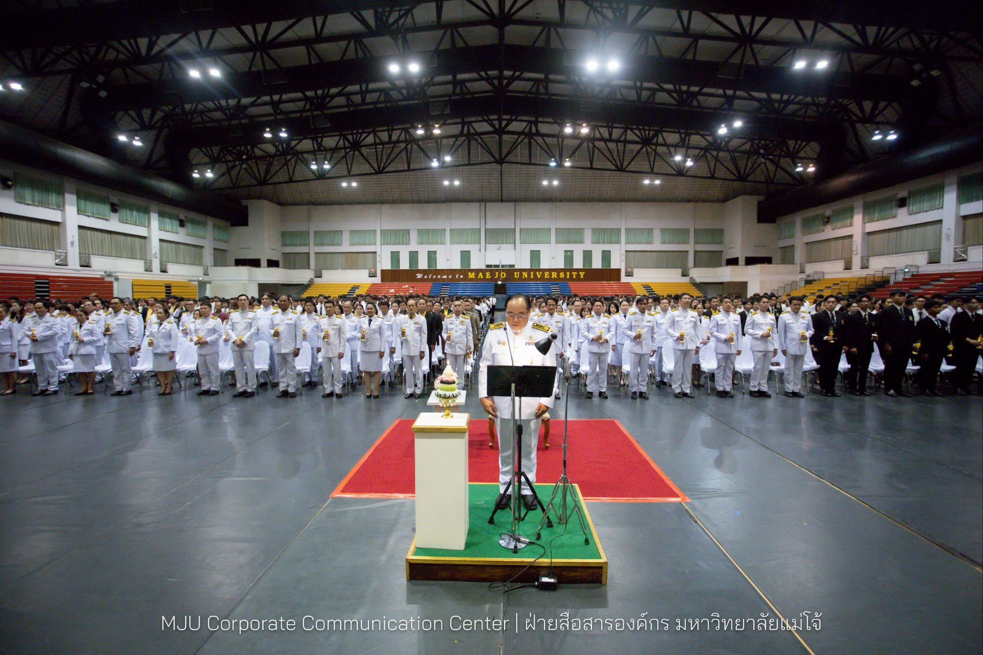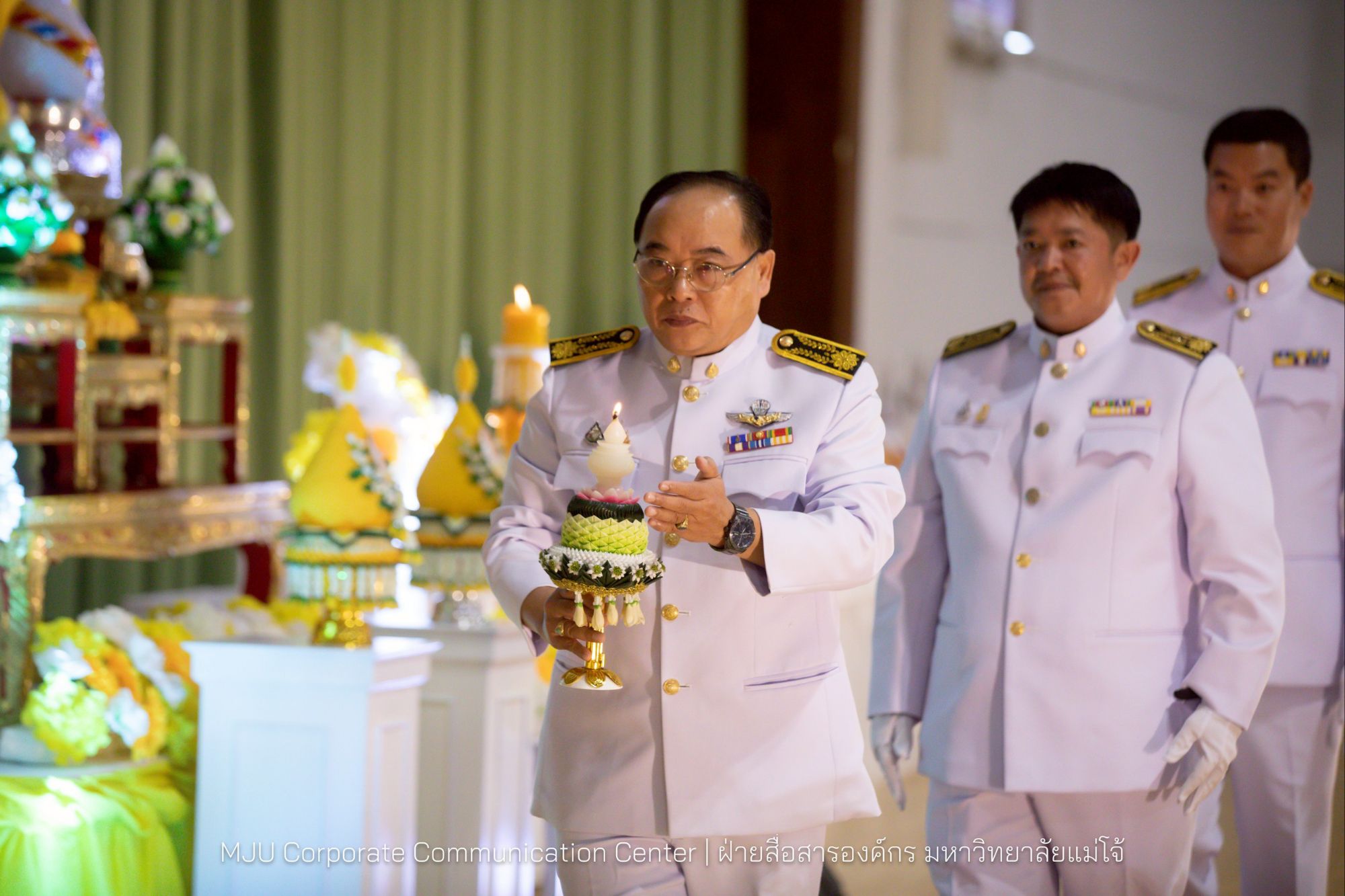 โอกาสนี้ รองศาสตราจารย์ ดร.วีระพล ทองมา อธิการบดีมหาวิทยาลัยแม่โจ้ เป็นประธานใน มีพิธีถวายสัตย์ปฏิญาณเพื่อเป็นข้าราชการที่ดีและเป็นพลังของแผ่นดิน พิธีวางพานพุ่ม ถวายเครื่องราชสักการะ และพิธีจุดเทียนถวายพระพรชัยมงคล ซึ่งแสดงถึงความจงรักภักดีต่อสถาบันพระมหากษัตริย์ โดยมีผู้บริหาร คณาจารย์ หัวหน้าส่วนงาน ข้าราชการ บุคลากร ผู้แทนศิษย์เก่าแม่โจ้ และนักศึกษา รวมถึงหน่วยงานปกครองส่วนท้องถิ่น ร่วมเข้าพิธี ณ ศูนย์กีฬาเฉลิมพระเกียรติ มหาวิทยาลัยแม่โจ้.