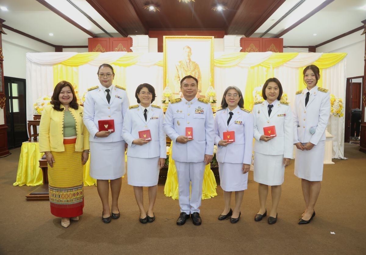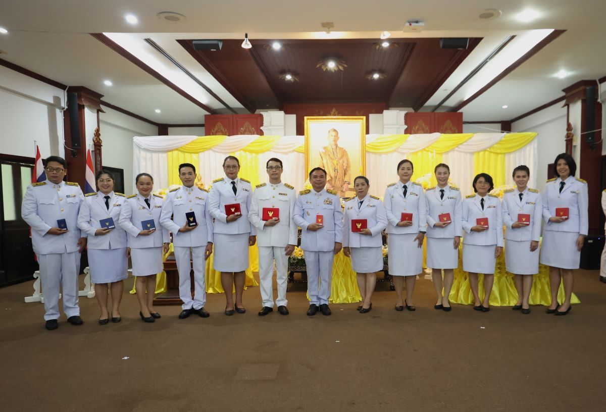ในโอกาสเดียวกัน มหาวิทยาลัยฯ ได้จัดพิธีรับพระราชทานเครื่องราชอิสริยาภรณ์ให้แก่บุคลากรผู้ปฏิบัติหน้าที่ด้วยความวิริยะอุตสาหะและมีคุณธรรมจริยธรรมสมควรแก่การยกย่อง โดย ผศ.สมเกียรติ วงษ์พานิช รองอธิการบดีฝ่ายบริหาร เป็นผู้กล่าวรายงาน และเบิกตัวผู้เข้ารับพระราชทานเครื่องราชอิสริยาภรณ์ก่อนที่ประธานในพิธีจะกล่าวแสดงความยินดีและร่วมถ่ายภาพเป็นที่ระลึก