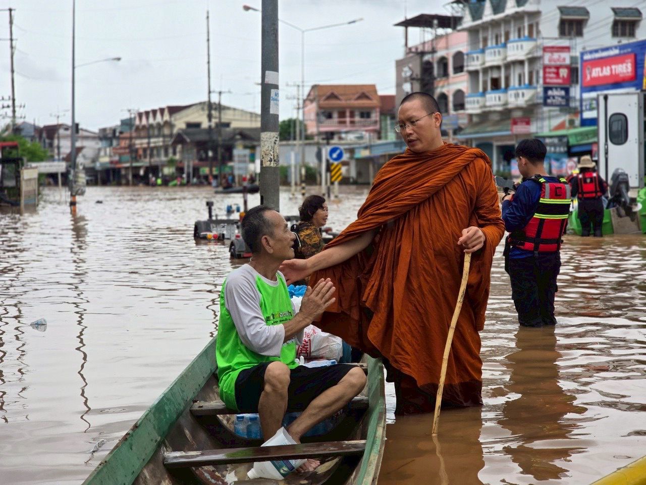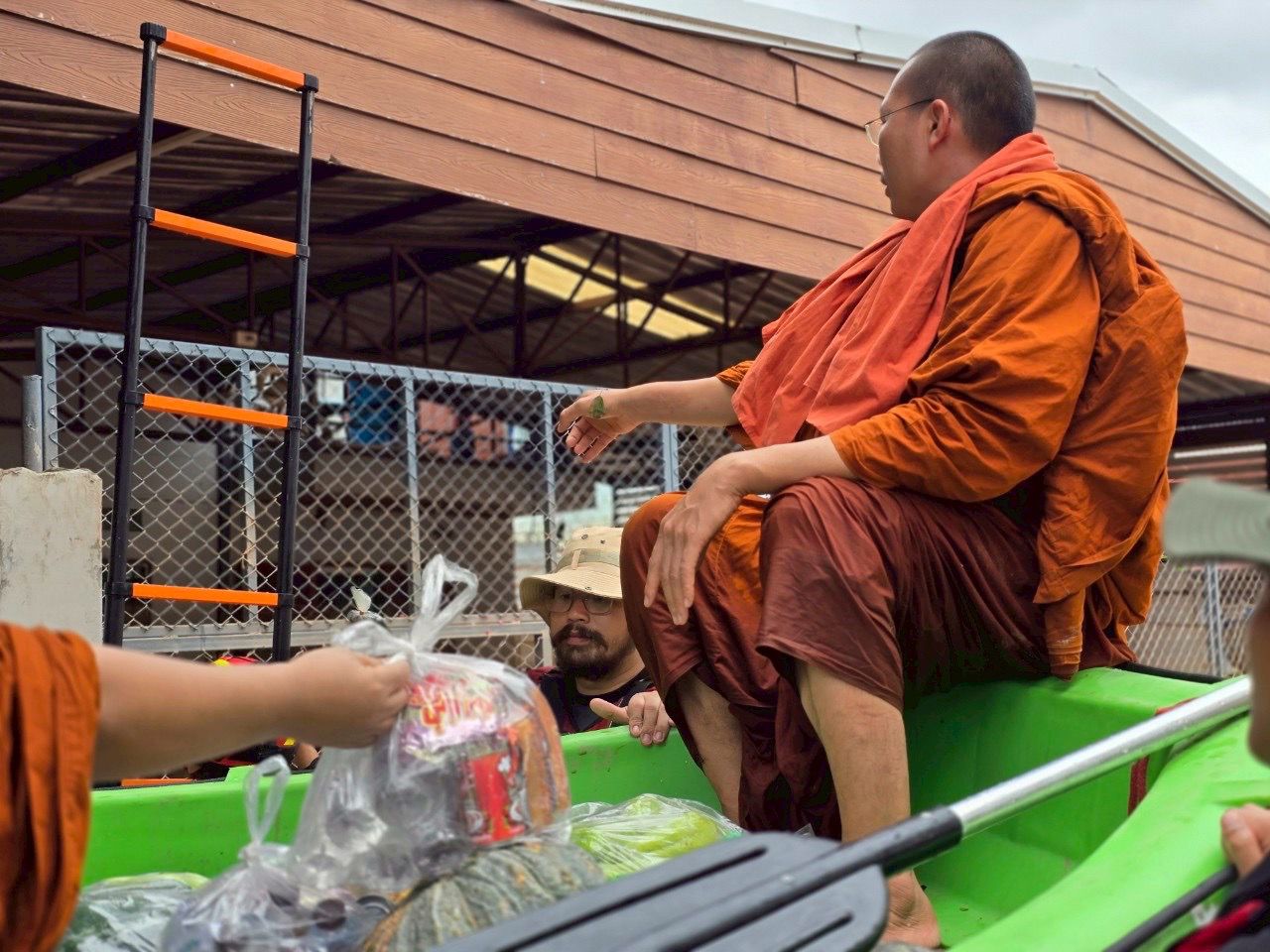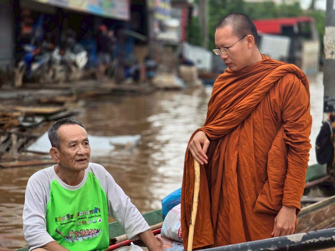 พระจิตอาสา ลงเรือ “ให้พร-ให้ของ” พระครูอ๊อดลุยน้ำท่วมเมืองน่าน ช่วยผู้ป่วยไตเรื้อรัง-แจกของยังชีพ ย้ำเดินหน้าระดมความช่วยเหลือต่อเนื่อง