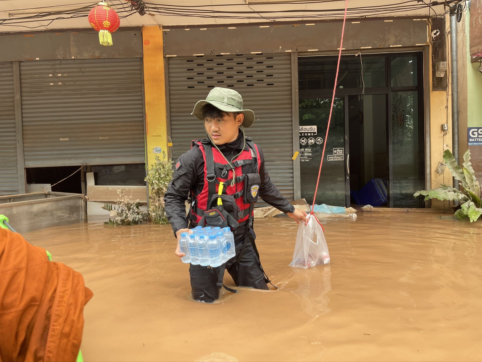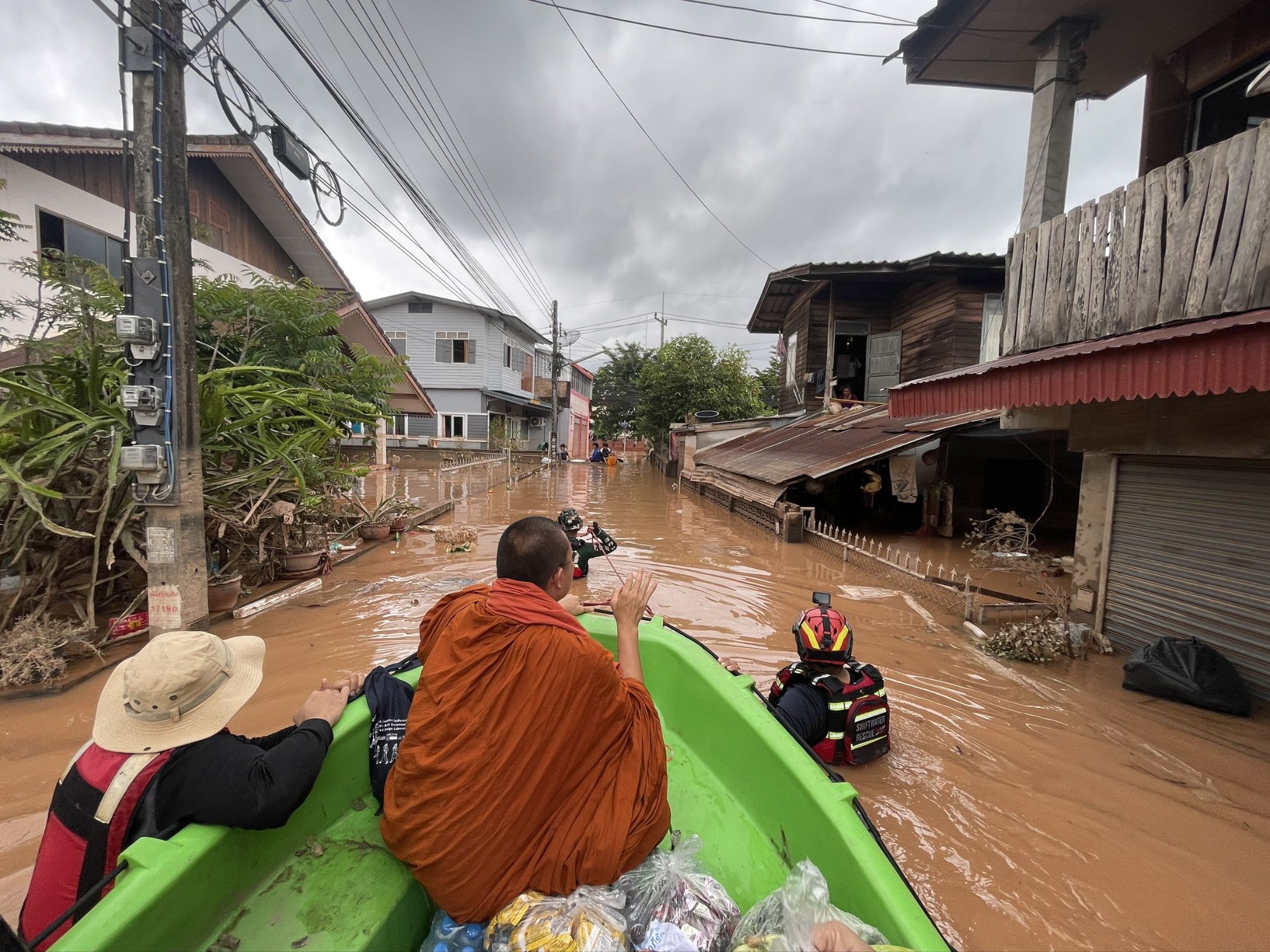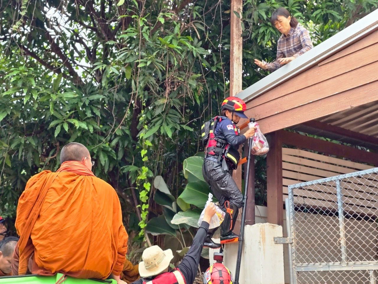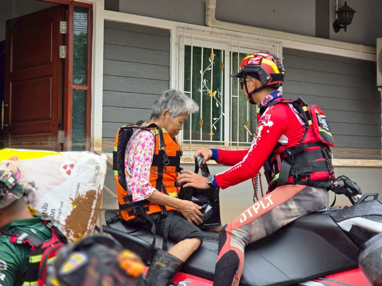 หลังได้รับแจ้งเหตุ ทีมกู้ภัยและพระครูอ๊อดได้เร่งประสานจัดเตรียมเรือเจ็ตสกีเข้าถึงบ้านผู้ป่วย ซึ่งเป็นหญิงสูงวัยอายุประมาณ 70 ปี ซึ่งอยู่ในสภาพอ่อนแรงจากการขาดอาหารและความเครียดสะสม ก่อนลำเลียงออกจากพื้นที่น้ำท่วมและนำส่งโรงพยาบาลโดยเร่งด่วน