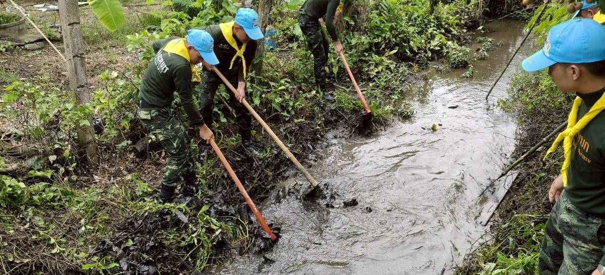 ศูนย์อำนวยการจิตอาสาพระราชทาน มณฑลทหารบกที่ 33 ร่วมใจภักดิ์ พัฒนาลำเหมืองสาธารณะแม่แฝกใหม่ ถวายเป็นพระราชกุศล