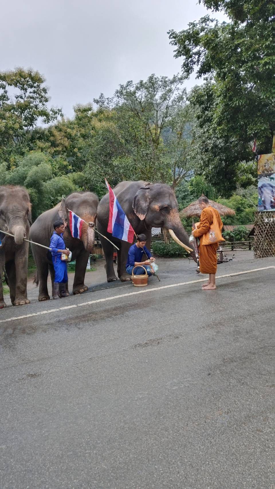 เช้าวันที่ 28 กรกฎาคม 2568 ณ ปางช้างบ้านช้างตระกูลแสน “ดูช้างดูดอย” อำเภอแม่แตง จังหวัดเชียงใหม่ ทีมควาญช้างพร้อมช้างภายในปางจำนวนหลายเชือก นำโดย “พลายวาเลนไทน์” “พลายงาม” “พลายแสนตัน” “พังมีนา” “พังเหมยลี่” “พังใบตอง” และ “พลายดูดอย” ร่วมกิจกรรม “หัวใจรักชาติ” จัดพิธีตักบาตรพระสงฆ์บริเวณหน้าปางช้าง เพื่อถวายเป็นพระราชกุศลแด่สมเด็จพระเจ้าอยู่หัว และเพื่อความเป็นสิริมงคลเนื่องในโอกาสวันเฉลิมพระชนมพรรษา 28 กรกฎาคม
