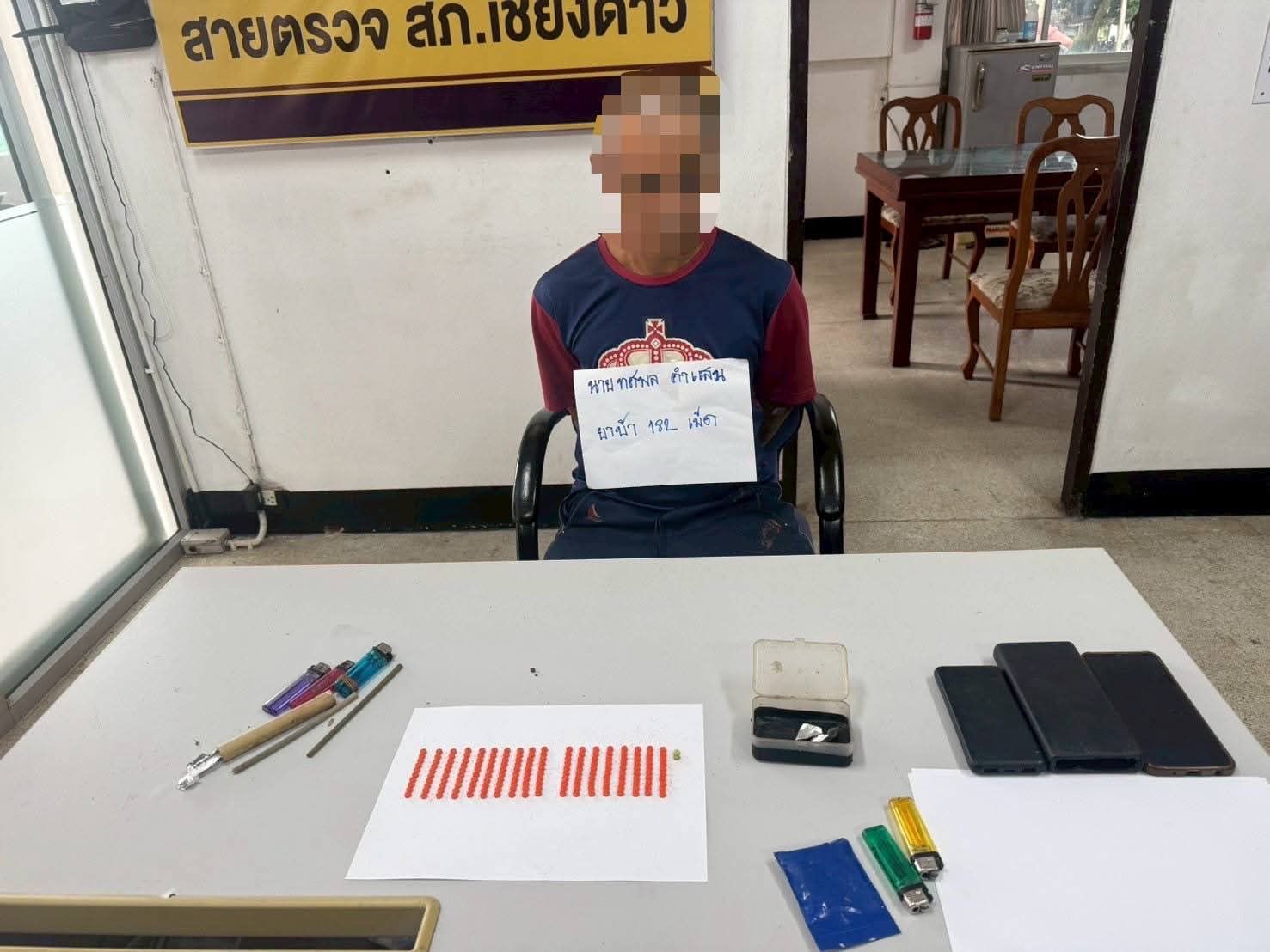บุกรวบถึงห้างไร่! หนุ่มใหญ่เชียงดาวซุกยาบ้า 182 เม็ด พร้อมอุปกรณ์ครบมือ
