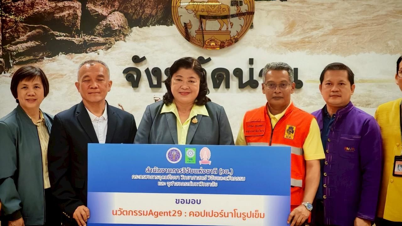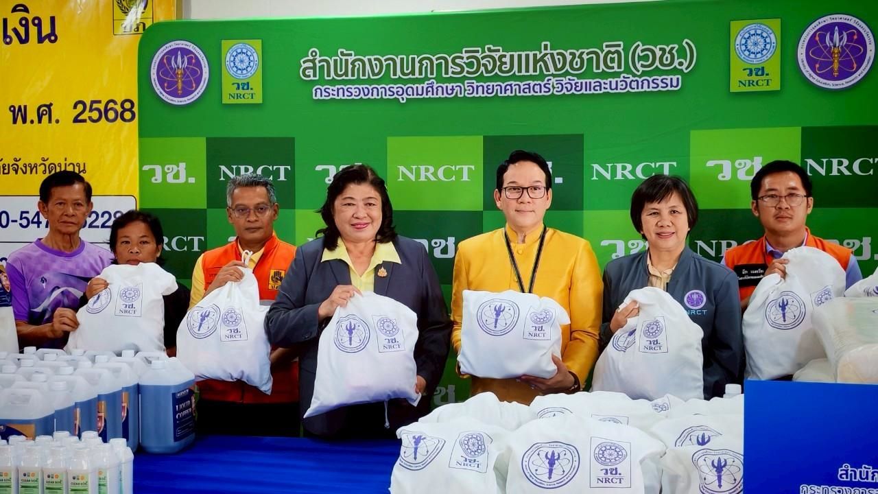 วันที่ 30 กรกฎาคม 2568 เวลา ที่ ศาลากลางจังหวัดน่านผู้ช่วยศาสตราจารย์ ดร.วิโรจน์ มงคลเทพ ผู้อำนวยการสำนักงานบริหารมหาวิทยาลัยเทคโนโลยีราขมงคลล้านนา น่าน นำคณะผู้บริหาร เข้ารับมอบนวัตกรรมช่วยบรรเทาและฟื้นฟูหน่วยงานและผู้ได้รับผลกระทบจากสถานการณ์น้ำท่วมในพื้นที่จังหวัดน่าน จาก ดร.วิภารัตน์ ดีอ่อง ผู้อำนวยการสำนักงานการวิจัยแห่งชาติ (วช.) พร้อมด้วยผู้ทรงคุณวุฒิ วช. และคณะนักวิจัย โดยมี นายบรรจง ขุนเพชร รองผู้ว่าราชการจังหวัดน่าน เป็นผู้แทนรับมอบในส่วนของจังหวัดน่านด้วย