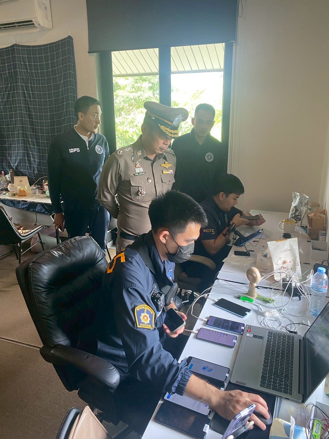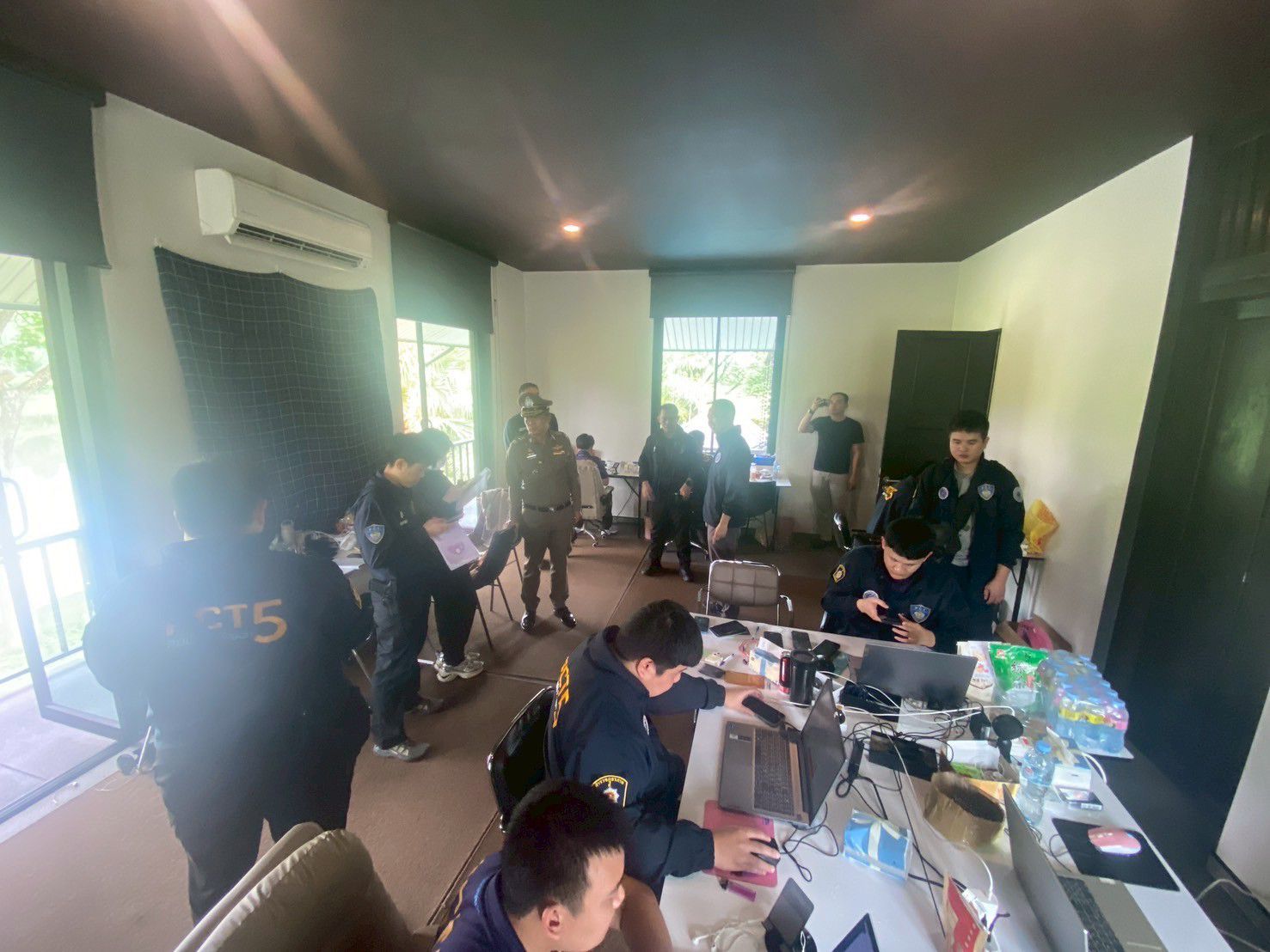 จากการตรวจค้น เจ้าหน้าที่ยึดของกลางได้เป็นจำนวนมาก อาทิ คอมพิวเตอร์กว่า 20 เครื่อง, โทรศัพท์มือถือมากกว่า 100 เครื่อง, และซิมการ์ดของประเทศจีนจำนวนมาก ซึ่งใช้ในการติดต่อกับเหยื่อชาวจีนกว่า 10 ราย ผู้ต้องหาทั้งหมดเป็นชาวจีนที่เดินทางเข้าประเทศไทยและเช่าบ้านหลังนี้มาประมาณ 3 เดือน โดยมีหัวหน้าแก๊งชาวจีนเป็นผู้จัดการให้ลูกน้องกินอยู่หลับนอนและทำงานตลอด 24 ชั่วโมงภายในบ้าน โดยผู้ต้องหาแต่ละคนจะได้รับค่าจ้างสูงถึงหัวละประมาณ 10,000 – 20,000 หยวน หรือราว 50,000 – 100,000 บาทต่อเดือน มีภารกิจหลักคือการหลอกลวงชาวจีนหลากหลายรูปแบบ ทั้งการหลอกขายสินค้าออนไลน์, หลอกให้โอนเงินเพื่อแก้ปัญหาสายการบิน, ปัญหาธนาคาร, รวมถึงการข่มขู่เรียกเงินในลักษณะของแก๊งคอลเซ็นเตอร์