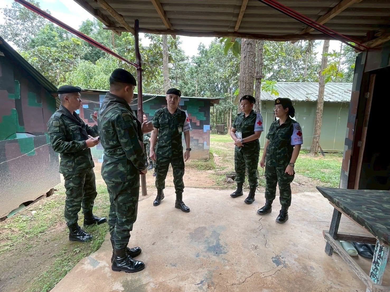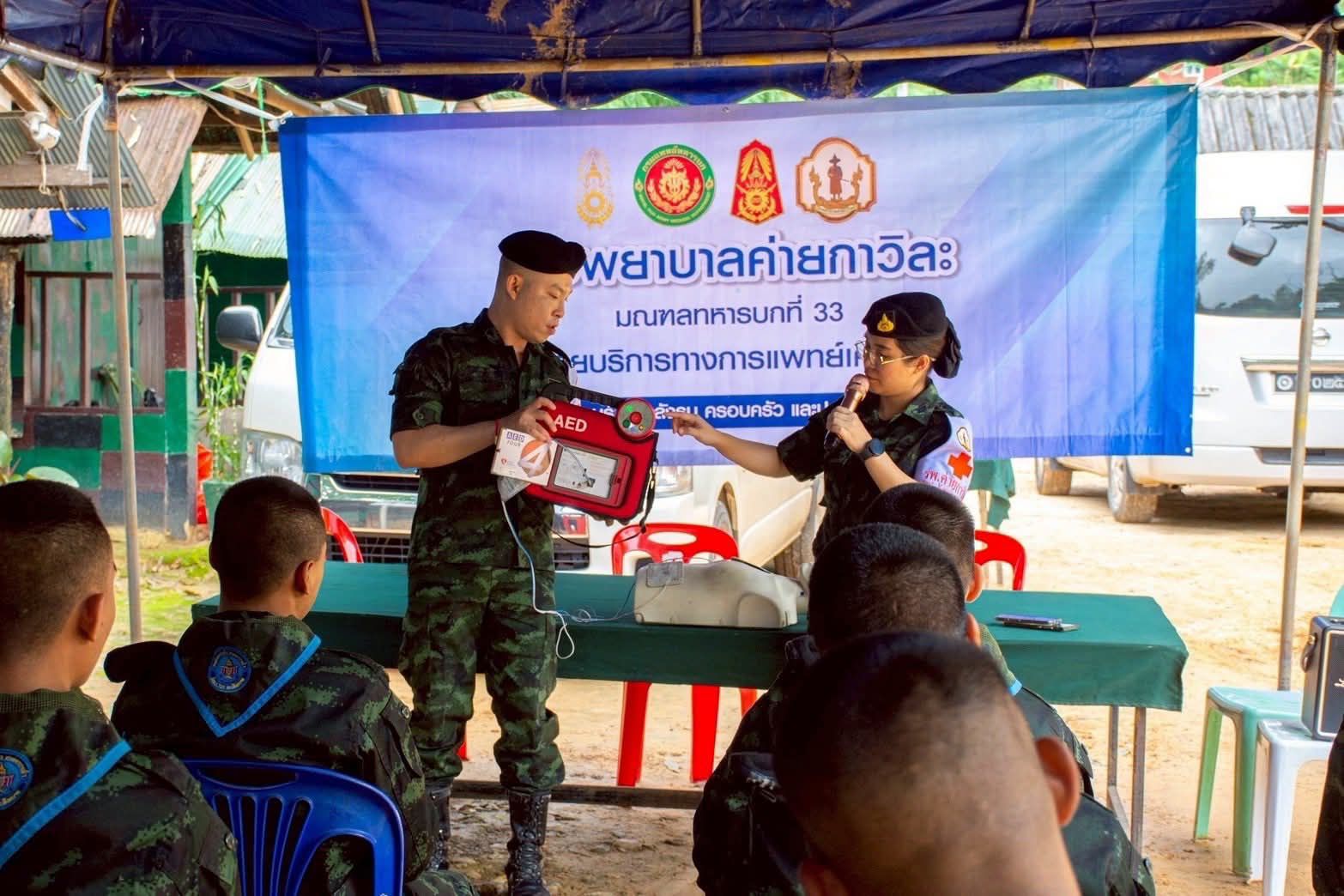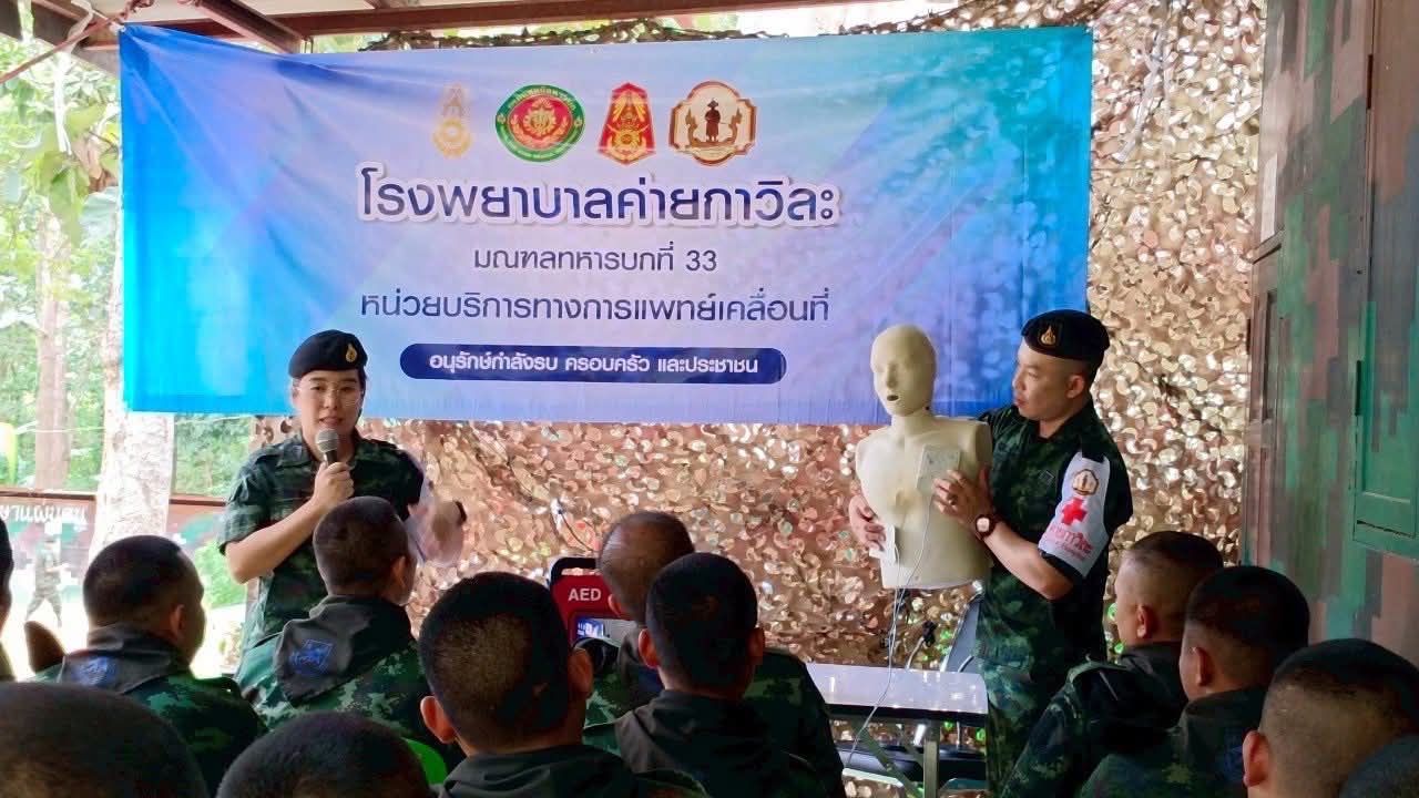 นอกจากนี้ ยังมีการพ่นสารเคมีแบบฝอยละอองรอบฐานปฏิบัติการ เพื่อป้องกันโรคจากแมลงพาหะ เช่น ไข้เลือดออกและมาลาเรีย ซึ่งเป็นปัญหาสุขภาพที่พบบ่อยในพื้นที่ชายแดน ทีมแพทย์ยังได้จัดอบรมให้ความรู้ด้านการปฐมพยาบาลเบื้องต้น การช่วยฟื้นคืนชีพ (CPR) และการใช้เครื่องกระตุกหัวใจไฟฟ้าอัตโนมัติ (AED) เพื่อเสริมสร้างขีดความสามารถในการดูแลตนเองและช่วยเหลือผู้อื่นให้กับกำลังพล