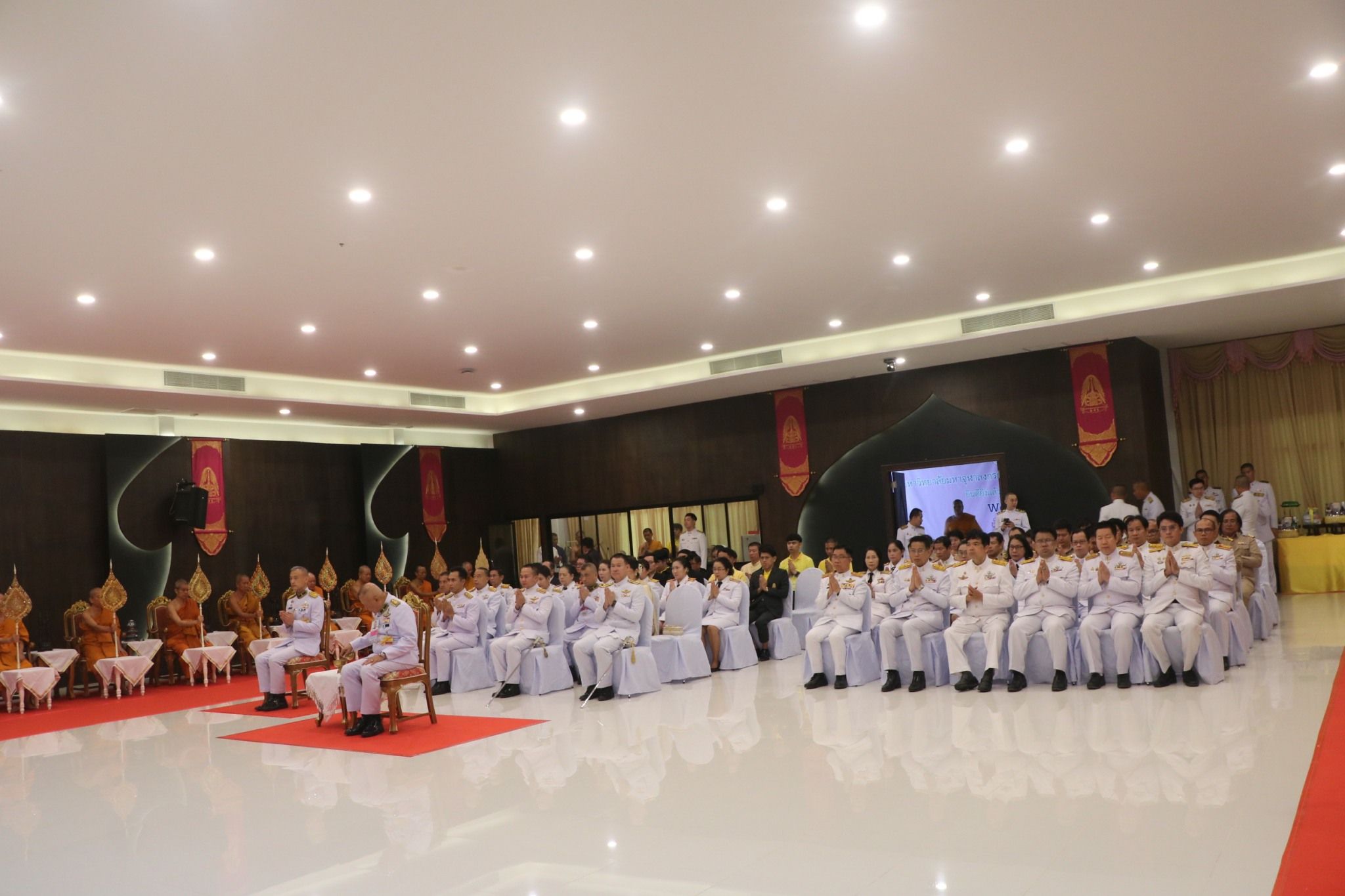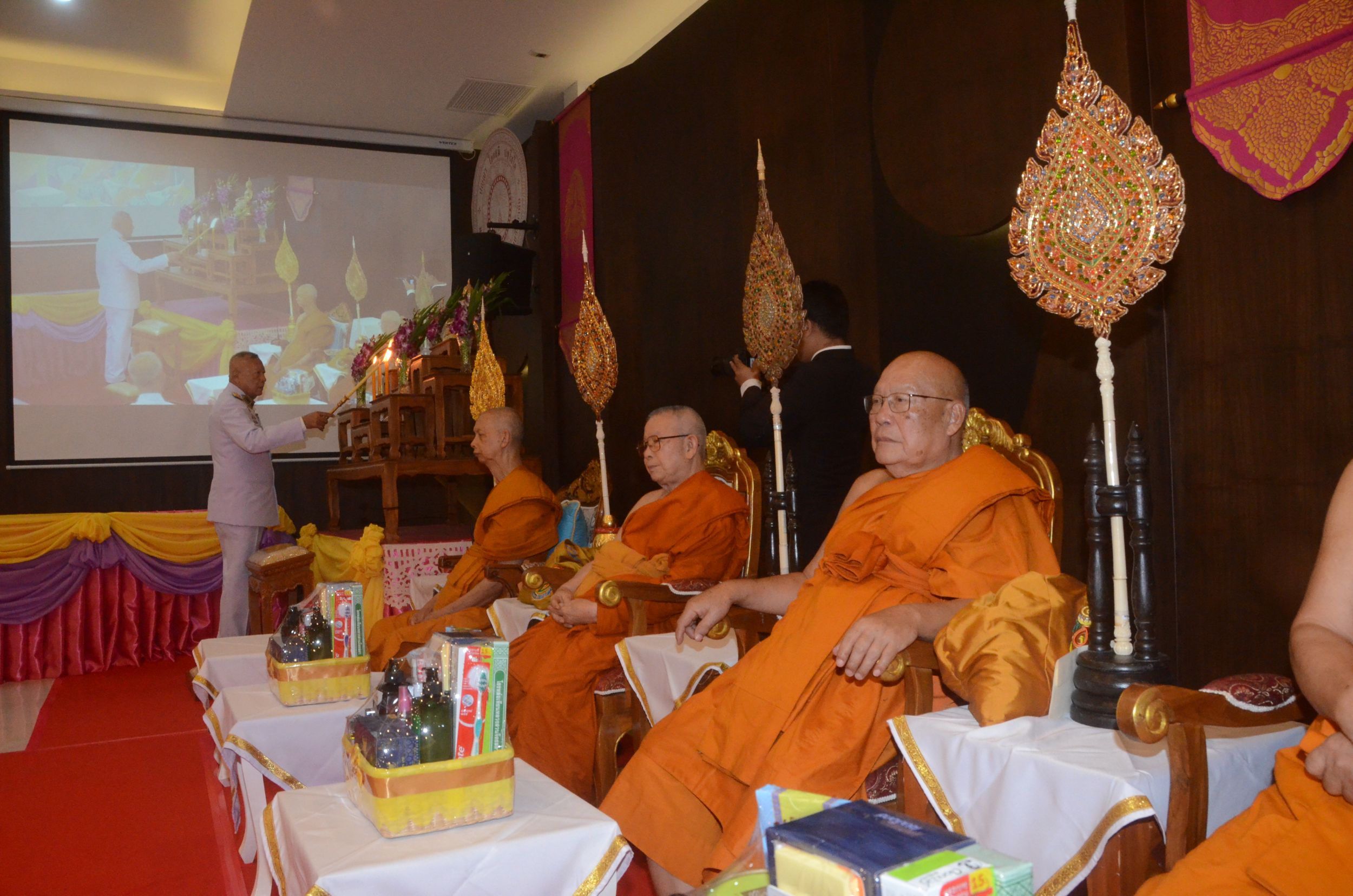 วันพฤหัสบดีที่ 31 กรกฎาคม 2568 พระบาทสมเด็จพระเจ้าอยู่หัว ทรงพระกรุณาโปรดเกล้าโปรดกระหม่อมให้ พลอากาศตรี สุพิชัย สุนทรบุระ รองเลขาธิการสำนักพระราชวัง เป็นผู้อัญเชิญผ้าไตรและตะกร้าสิ่งของพระราชทานไปถวายแด่คณะสงฆ์ที่ร่วมให้การสนับสนุนการจัดงานโครงการ “ปูทาง…สู่การตื่นรู้ ธรรมนาวา “วัง” ” (ภาคประชาชน) จังหวัดเชียงใหม่ เมื่อวันที่ 13 กรกฎาคม 2568 ที่ผ่านมา ในการนี้ได้รับความเมตตาจาก พระธรรมเสนาบดี เจ้าคณะภาค 7 เจ้าอาวาสวัดพระธาตุดอยสุเทพ ราชวรวิหาร ประธานฝ่ายสงฆ์ โดยมีนายวีรพงศ์ ฤทธิ์รอด รองผู้ว่าราชการจังหวัดเชียงใหม่ ปฏิบัติหน้าที่แทนผู้ว่าราชการจังหวัดเชียงใหม่ พร้อมด้วยคณะสงฆ์ ผู้บริหาร คณาจารย์ เจ้าหน้าที่ วิทยาเขตเชียงใหม่ รวมถึงวิทยาเขต และวิทยาลัยสงฆ์ และหัวหน้าส่วนราชการ หน่วยงานที่เกี่ยวข้องเข้าร่วม ณ ห้องประชุมพระพรหมวัชรธีราจารย์ มหาวิทยาลัยมหาจุฬาลงกรณราชวิทยาลัย วิทยาเขตเชียงใหม่ ตำบลป่าเมี่ยง อำเภอดอยสะเก็ด จังหวัดเชียงใหม่.