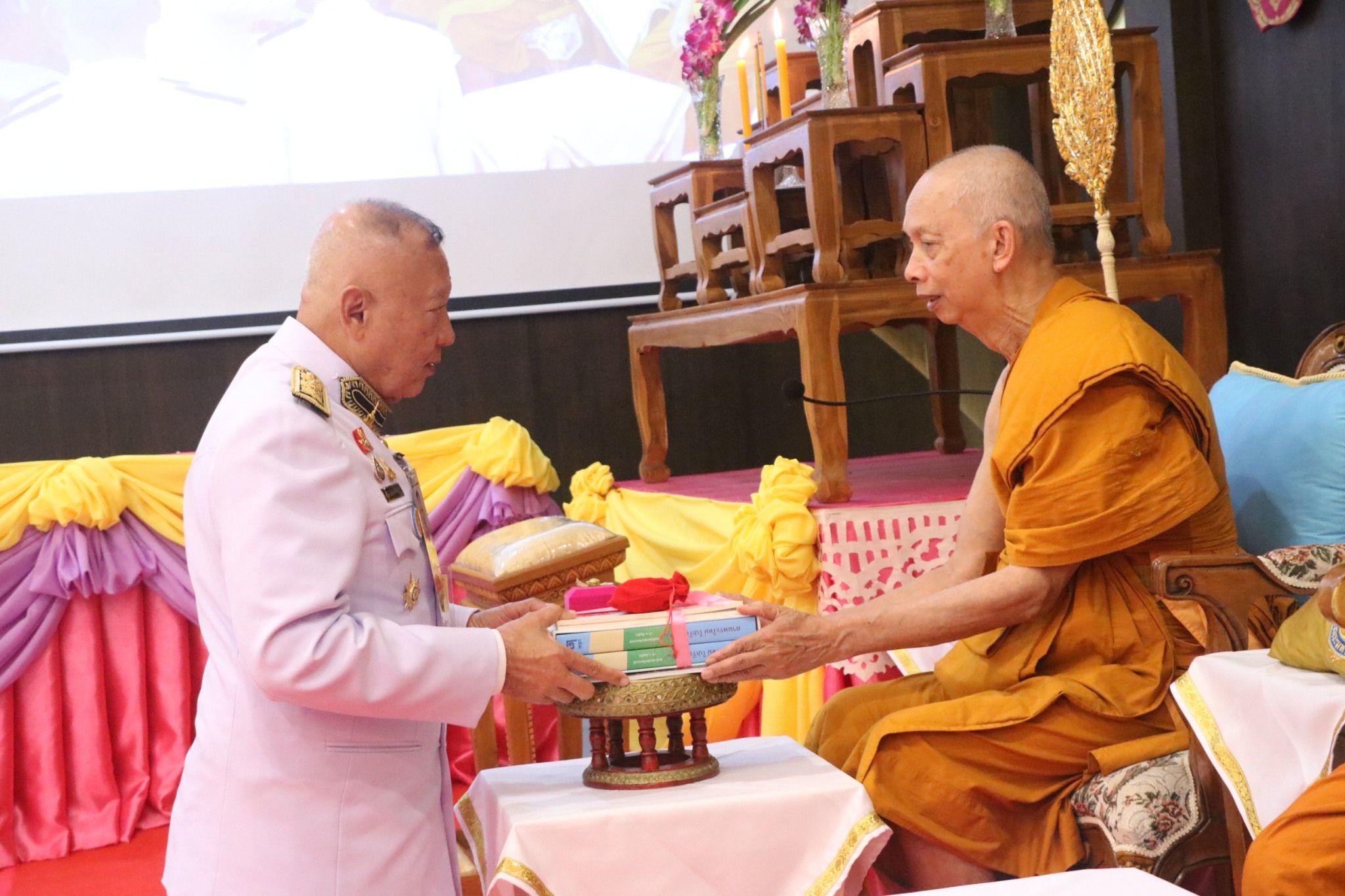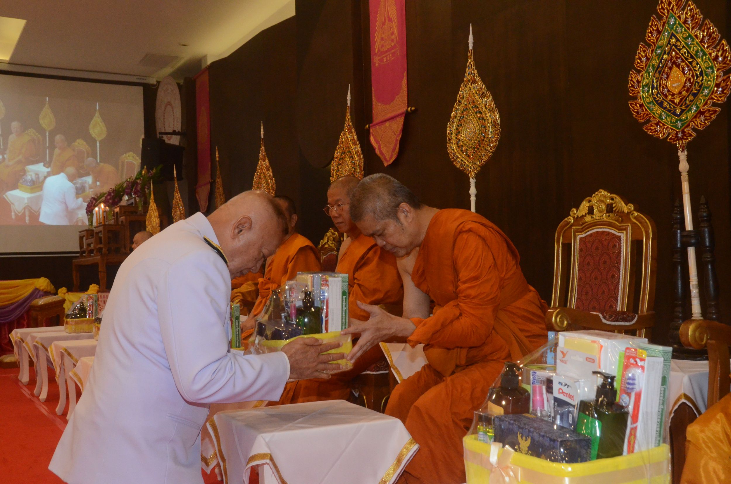 พิธีพระราชทานถวายผ้าไตร ไทยธรรม แด่คณะสงฆ์ที่โดยเสด็จช่วยงาน “ปูทาง….สู่การตื่นรู้ ธรรมนาวา วัง” (ภาคประชาชน) รุ่นที่ 4 จังหวัดเชียงใหม่