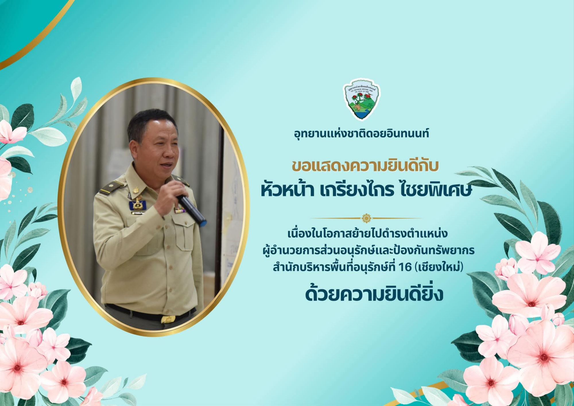ขอแสดงความยินดีกับ นายเกรียงไกร ไชยพิเศษ อดีตหัวหน้าอุทยานแห่งชาติดอยอินทนนท์ ที่ได้รับการแต่งตั้งให้ดำรงตำแหน่งใหม่ เป็นผู้อำนวยการส่วนอนุรักษ์และป้องกันทรัพยากร สำนักบริหารพื้นที่อนุรักษ์ที่ 16 (เชียงใหม่)