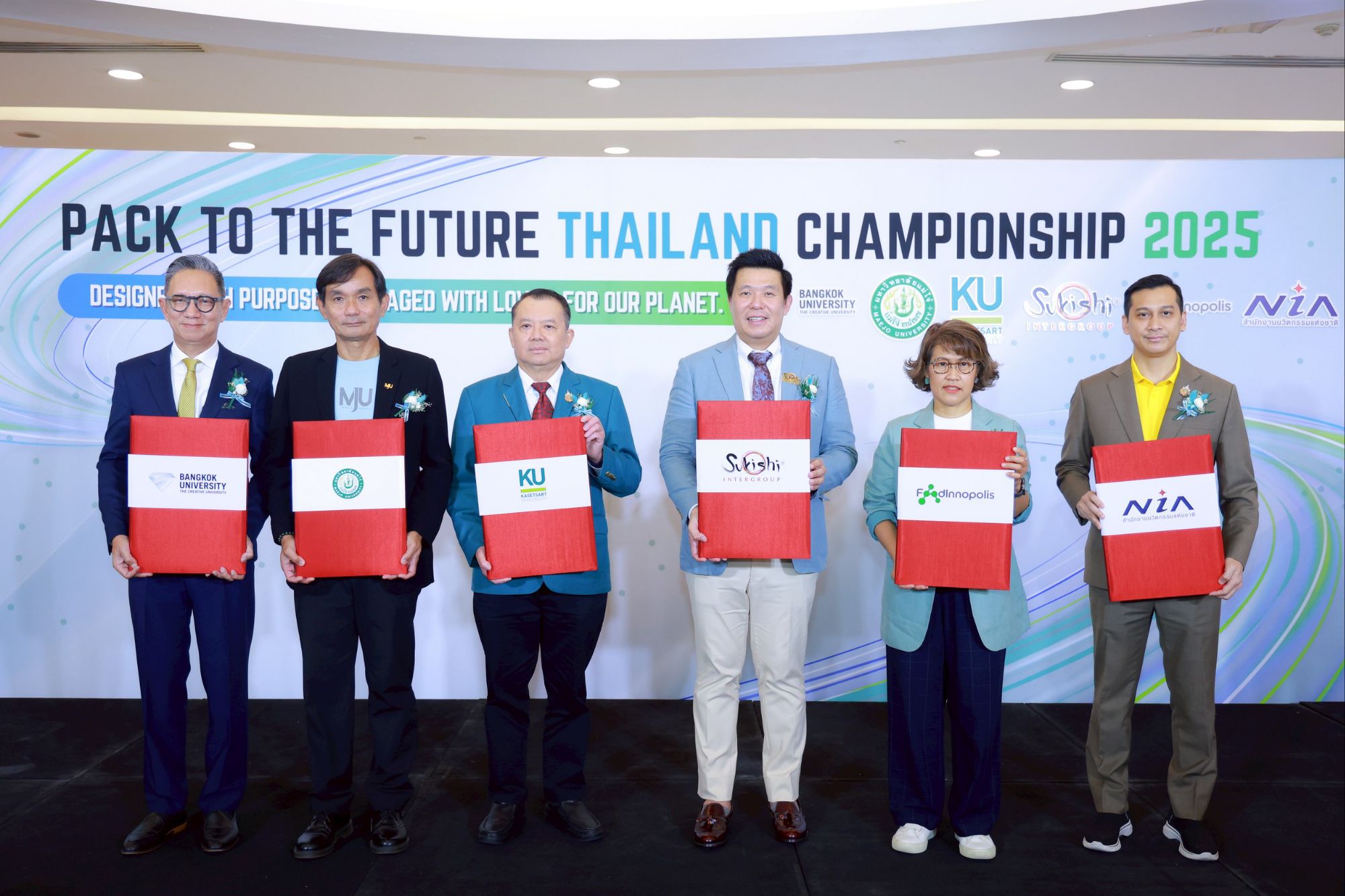 การแข่งขันออกแบบบรรจุภัณฑ์ เพื่อสังคมที่ยั่งยืน ชิงแชมป์ประเทศไทย 2568 (PACK TO THE FUTURE THAILAND CHAMPIONSHIP 2025) เป็นความร่วมมือระหว่าง บริษัท ซูกิชิ อินเตอร์กรุ๊ป จำกัด, สำนักงานนวัตกรรมแห่งชาติ, เมืองนวัตกรรมอาหาร, และสถาบันการศึกษาอีก 3 แห่ง ได้แก่ มหาวิทยาลัยเกษตรศาสตร์, มหาวิทยาลัยแม่โจ้ และมหาวิทยาลัยกรุงเทพ โดยจัดภายใต้แนวคิด (สานต่อพลัง “นิสิต นักศึกษา” สู่ “นิสิต นักศึกษา มืออาชีพ”) เพื่อเฟ้นหาสุดยอดนักออกแบบรุ่นใหม่ที่จะมาร่วมสร้างสรรค์บรรจุภัณฑ์ที่เป็นมิตรต่อสิ่งแวดล้อม และตอบโจทย์ความต้องการทางสังคม อันจะส่งเสริมและกระตุ้นเตือนถึงผู้บริโภคเพื่อตระหนักถึงสภาพแวดล้อม ส่งเสริมศักยภาพนิสิต นักศึกษาสู่การเป็นนักออกแบบมืออาชีพ พร้อมก้าวพลักดันการใช้นวัตกรรมเพื่อการออกแบบสู่ความยั่งยืน และส่งเสริมภาคอุตสาหกรรมไทยร่วมกระตุ้น ตระหนักถึงความรับผิดชอบต่อสังคม สิ่งแวดล้อมต่อไป