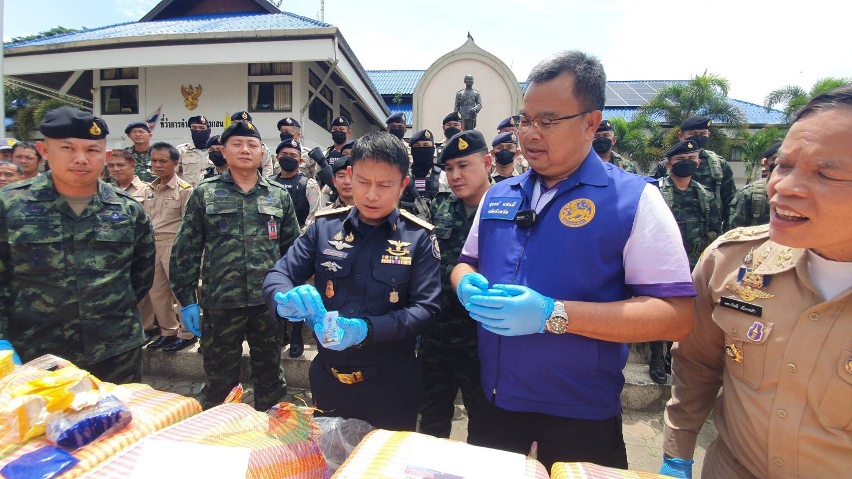 เมื่อเวลา 13.30 น. วันที่ 5 สิงหาคม 2568 ที่ลานหน้าที่ว่าการอำเภอเชียงแสน จังหวัดเชียงราย นายชรินทร์ ทองสุข ผู้ว่าราชการจังหวัดเชียงราย มอบหมายให้ นายสุพจน์ แสนมี ปลัดจังหวัดเชียงราย พันเอก กิตติ นาใจ รองผู้บังคับหน่วยเฉพาะกิจทัพเจ้าตาก กองกำลังผาเมือง นายคฑาสิทธิ์ เนื่องหล้า นายอำเภอเชียงแสน พันตำรวจเอก อนุพันธ์ กันถารัตน์ ผู้กำกับการสถานีตำรวจภูธรเชียงแสน ฝ่ายปกครอง พร้อมด้วยหน่วยงานที่เกี่ยวข้องได้ร่วมกันแถลงข่าวการสกัดกั้นการลำเลียงยาบ้า จำนวนประมาณ 2,500,000 เม็ด