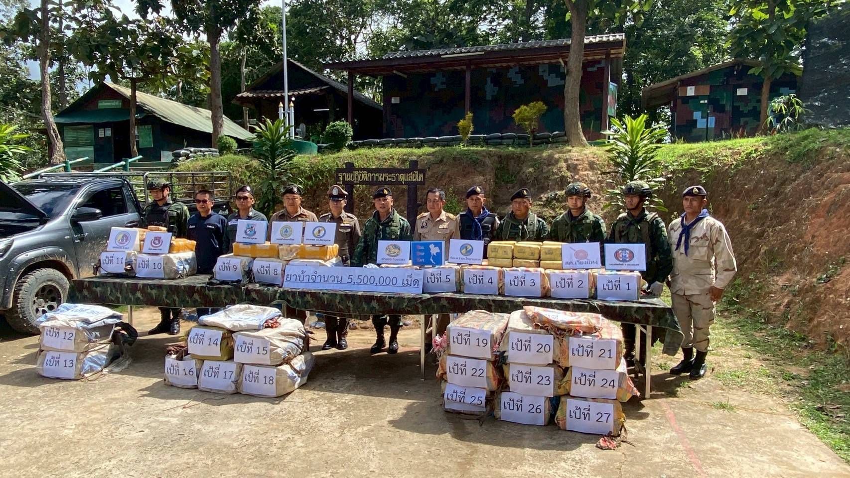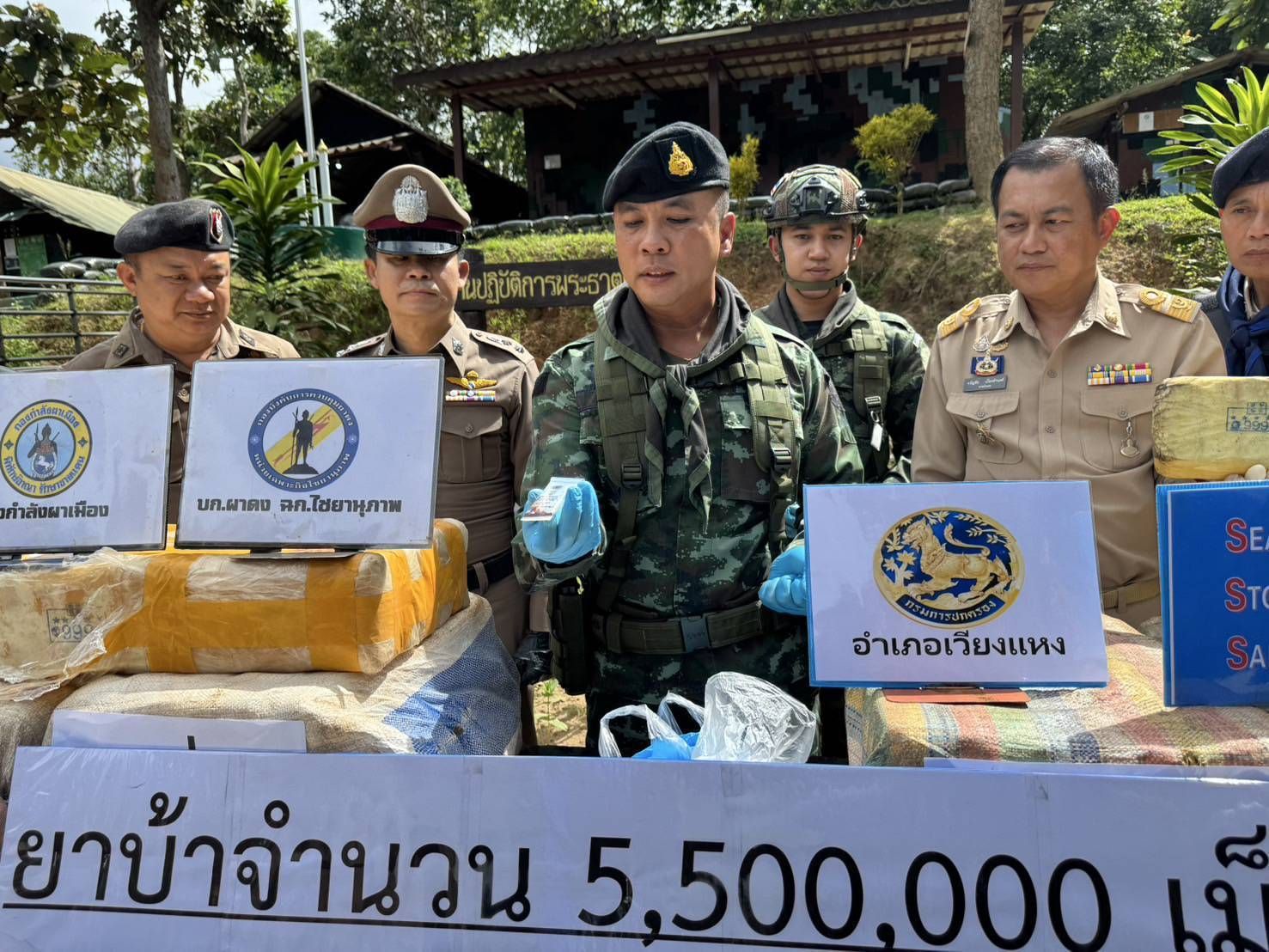 ผาเมือง สกัดกั้นกลุ่มขบวนการลักลอบลำเลียงยาเสพติด ยึดยาบ้า จำนวน 5,500,000 เม็ด อ.เวียงแหง จ.เชียงใหม่
