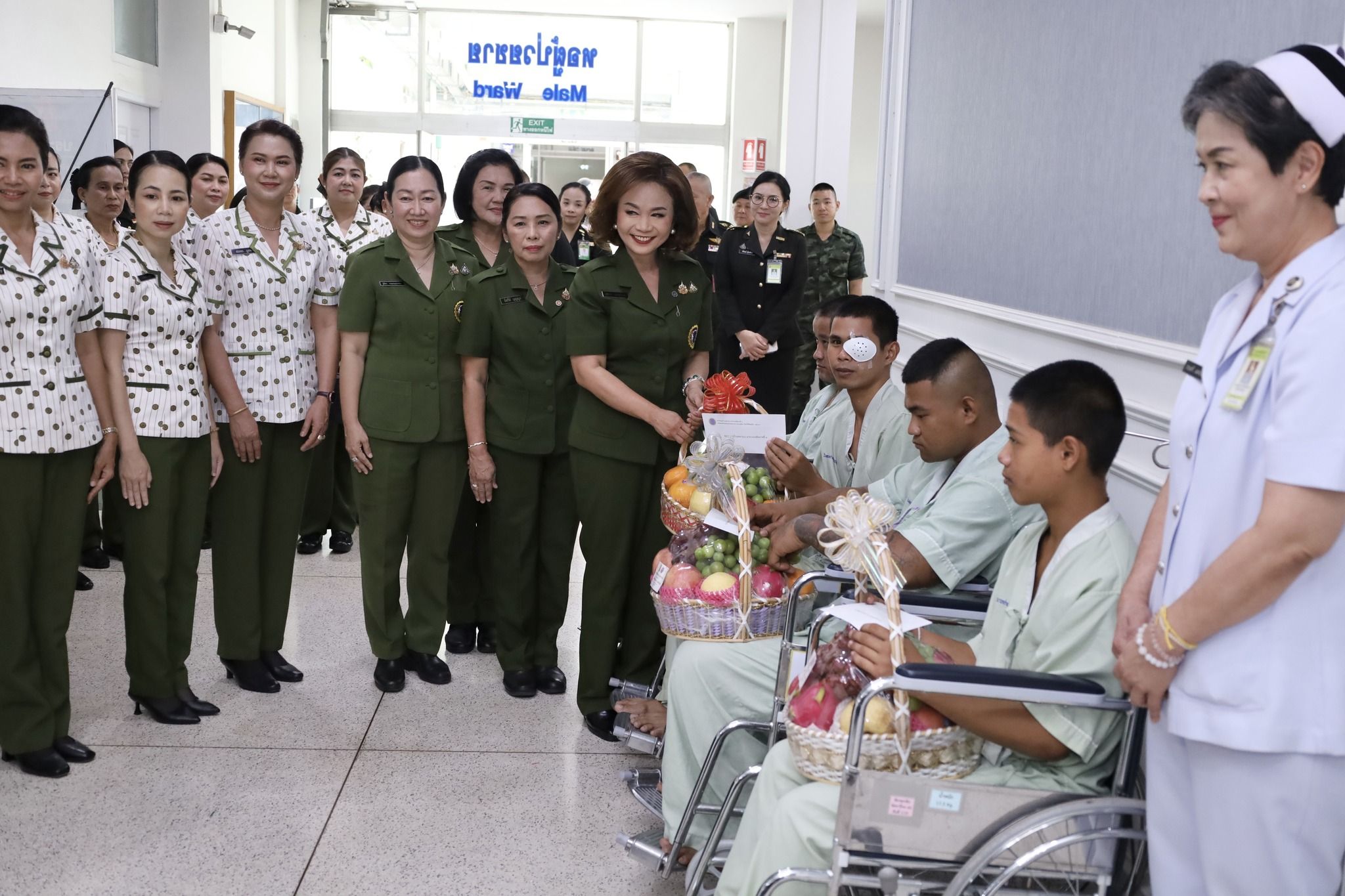 พร้อมกันนี้ ประธานสมาคมแม่บ้านทหารบก สาขา กองทัพภาคที่ 3 และคณะ เยี่ยมให้กำลังใจแก่กำลังพล สังกัด กองทัพภาคที่ 3 ที่สนับสนุนการปฏิบัติหน้าที่ร่วมกับกองทัพภาคที่ 2 และบาดเจ็บจากการปะทะในพื้นที่ชายแดนไทย-กัมพูชา จำนวน 6 นาย โดยมอบเงินบำรุงขวัญและกระเช้าผลไม้ ณ โรงพยาบาลค่ายจิรประวัติ เพื่อเป็นขวัญและกำลังใจให้กับกำลังพลและครอบครัว