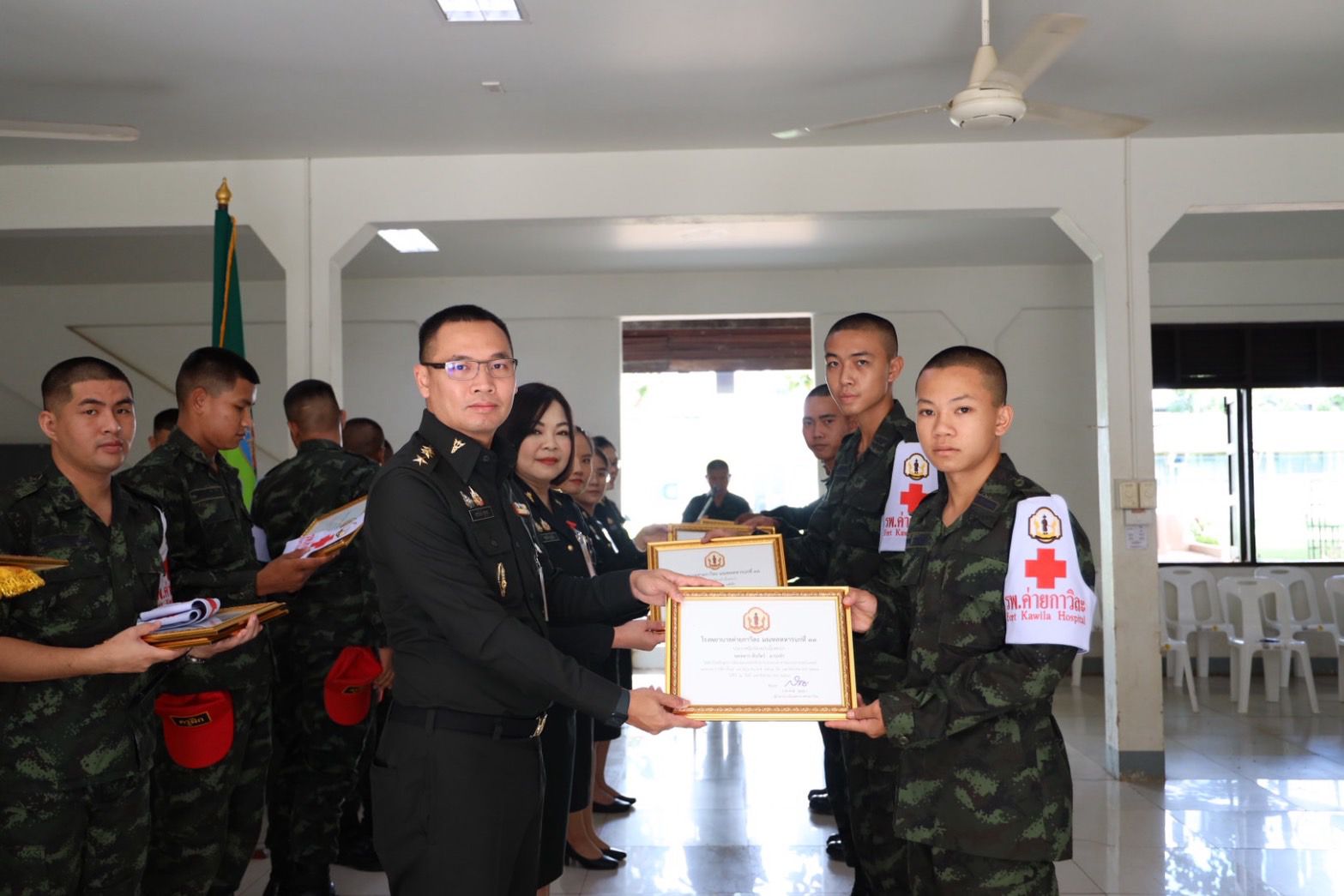 เมื่อวันที่ 14 สิงหาคม 2568 พันเอก สรารักษ์ ชูสกุล ผู้อำนวยการโรงพยาบาลค่ายกาวิละ เป็นประธานในพิธีปิดการฝึกอบรมนักเรียนเสนารักษ์ หลักสูตรเบื้องต้นเฉพาะเหล่าแพทย์ 8 สัปดาห์ สำหรับพลทหารกองประจำการผลัดที่ 1/68 จากหน่วยทหารในพื้นที่จังหวัดเชียงใหม่ จำนวนทั้งสิ้น 31 นาย ภายในพิธีได้มอบปลอกแขนพยาบาล อันเป็นสัญลักษณ์แห่งความพร้อมปฏิบัติหน้าที่ให้แก่ผู้สำเร็จการฝึก พร้อมทั้งมอบใบประกาศนียบัตรรับรองคุณวุฒิ และเกียรติบัตรพิเศษให้แก่ผู้ที่มีผลการเรียนดีเยี่ยม ผู้ที่มีภาวะผู้นำดีเด่น รวมถึงครูผู้ฝึกและผู้ช่วยครูผู้ฝึกที่มีผลงานโดดเด่น ทั้งนี้ ผู้อำนวยการโรงพยาบาลได้กล่าวโอวาท แสดงความชื่นชมในความมุ่งมั่นตั้งใจของผู้เข้ารับการฝึก และให้ข้อคิดเพื่อเป็นแรงบันดาลใจในการนำความรู้ที่ได้รับไปใช้ในการปฏิบัติหน้าที่และการช่วยเหลือเพื่อนมนุษย์อย่างเต็มความสามารถ ณ หมวดพลเสนารักษ์ โรงพยาบาลค่ายกาวิละ จังหวัดเชียงใหม่