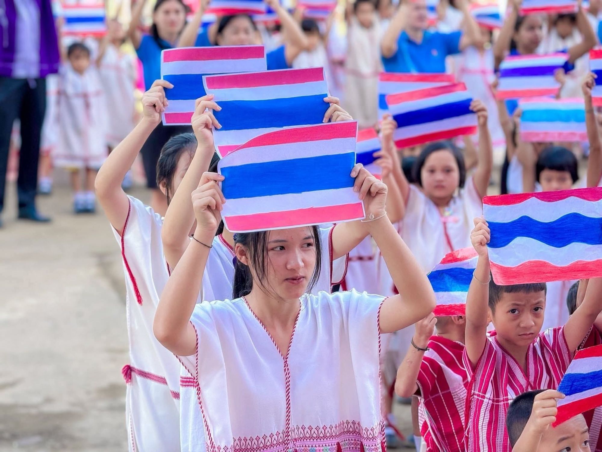 กิจกรรมดังกล่าวเริ่มขึ้นด้วยการร้องเพลงชาติไทยอย่างกึกก้อง เพื่อแสดงออกถึงความภาคภูมิใจในความเป็นชาติ ตามด้วยการชูป้ายรูปธงชาติที่นักเรียนร่วมกันระบายสีเป็นสัญลักษณ์แห่งความสามัคคีและพลังใจอันบริสุทธิ์