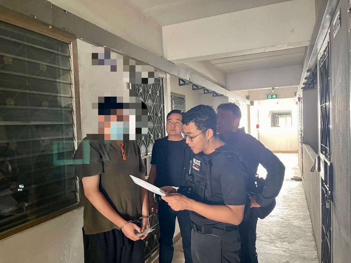 หลังได้รวบรวมพยานหลักฐานจนเพียงพอแล้ว เจ้าหน้าที่ได้ขออนุมัติศาลออกหมายจับ และเมื่อวันที่ 14 สิงหาคม 2568 ชุดสืบสวนก็สามารถติดตามจับกุมตัว นายเบ้น (นามสมมติ) อายุ 31 ปี ได้ที่บ้านเอื้ออาทรหนองหอย นายเบ้นยอมรับสารภาพตลอดข้อกล่าวหา พร้อมทั้งนำเจ้าหน้าที่ไปตรวจยึดของกลาง ชุดชั้นในจำนวนหลายชิ้น ที่ขโมยมาได้