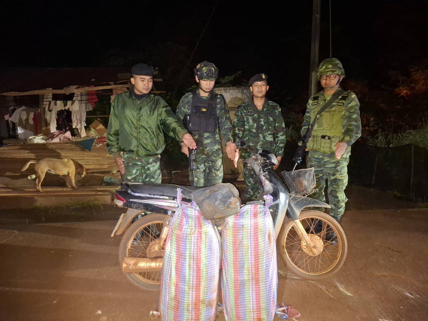 เมื่อวันที่ 16 สิงหาคม 2568 เวลา 02.30 น. กองร้อยทหารม้าที่ 2 หน่วยเฉพาะกิจไชยานุภาพ จัดกำลังพล 1 ชุดปฏิบัติการ ทำการลาดตระเวนและเฝ้าตรวจเพื่อป้องกัน และสกัดกั้นการกระทำผิดตามพระราชบัญญัติยาเสพติด บริเวณถนนสาธารณะ บ้านรินหลวง หมู่ที่ 3 ตำบลเมืองนะ อำเภอเชียงดาว จังหวัดเชียงใหม่ (เป็นเส้นทางอ้อมผ่านด่านตรวจ บ้านรินหลวง ห่างกันประมาณ 150 เมตร) ขณะปฏิบัติหน้าที่ได้ตรวจพบรถจักรยานยนต์ต้องสงสัย ยี่ห้อ Dream รุ่น 4 SR สีดำ หมายเลขทะเบียน 2 กย เชียงใหม่ 4001 ขับขี่มาตามเส้นทางดังกล่าว หน่วยจึงได้แสดงตัวเพื่อขอทำการตรวจค้น แต่รถจักรยานยนต์คันดังกล่าว ได้หยุดรถจอดข้างทาง จากนั้นคนขับรถได้ลงจากรถ และอาศัยความชำนาญในพื้นที่วิ่งหลบหนีไป จากการตรวจสอบรถจักรยานยนต์คันดังกล่าว ตรวจพบกระสอบถุงปุ๋ยหลากสี จำนวน 2 กระสอบ ภายในห่อหุ้มด้วยถุงพลาสติกสีดำ บรรจุยาเสพติดให้โทษประเภท 1 (ยาบ้า) กระสอบละ 240,000 เม็ด รวมประมาณ 480,000 เม็ด