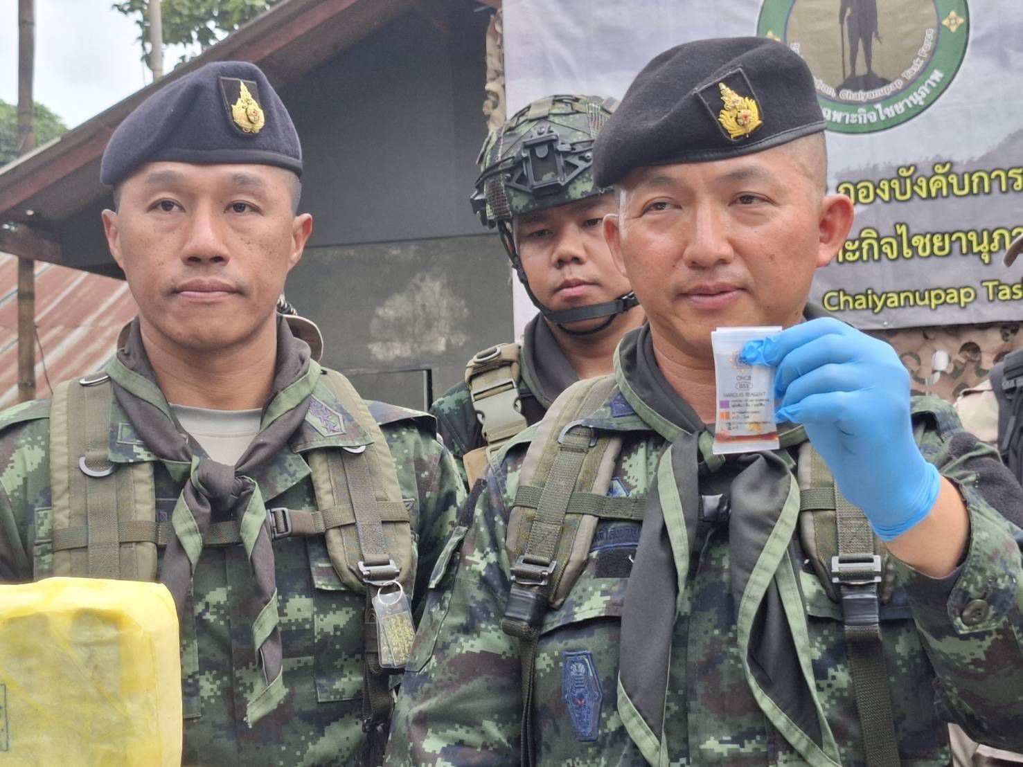 และเมื่อเวลา 10.00 น. พลตรี กิดากร จันทรา ผู้บัญชาการ กองกำลังผาเมือง/ผู้อำนวยการศูนย์ปฏิบัติการป้องกันและปราบปรามยาเสพติดกองกำลังผาเมือง มอบหมายให้ พันเอก อำนาจ วชิรศักดิ์โสภานะ ผู้บังคับหน่วยเฉพาะกิจไชยานุภาพ เป็นผู้แทน ร่วมกับหน่วยงานที่เกี่ยวข้องลงพื้นที่ เพื่อตรวจสอบการตรวจยึดยาเสพติดดังกล่าว และได้นำของกลางส่งให้กับสถานีตำรวจภูธรนาหวาย เพื่อดำเนินการตามกฎหมายต่อไป