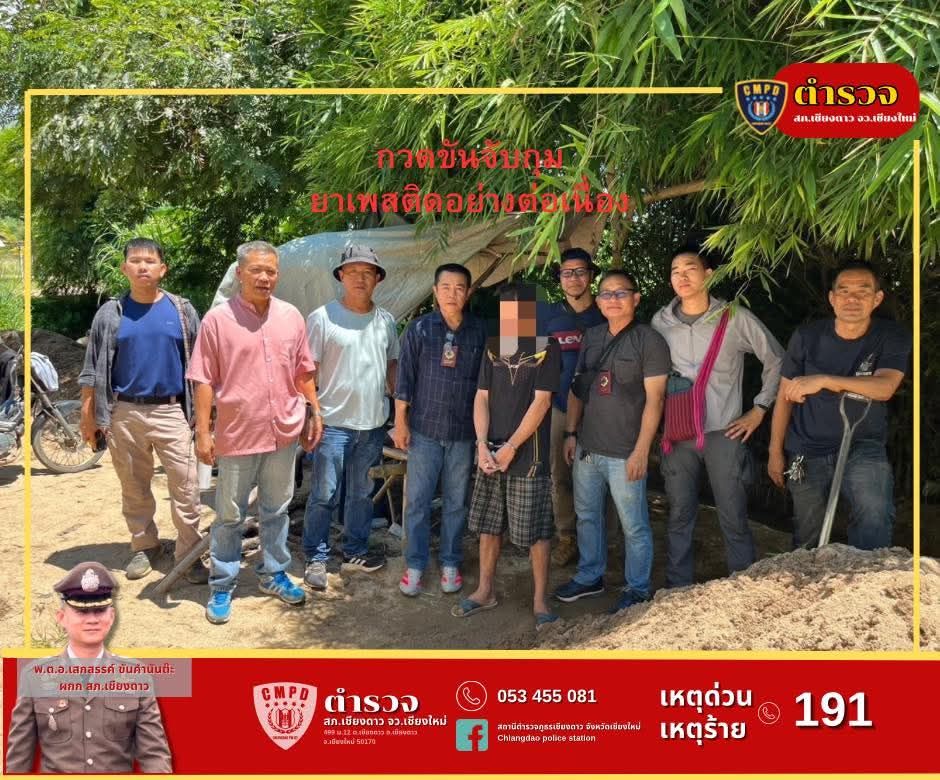 เชียงดาว, เชียงใหม่ — วันที่ 19 สิงหาคม 2568 เจ้าหน้าที่ตำรวจ สภ.เชียงดาว ภายใต้การอำนวยการของ พ.ต.อ.เสกสรรค์ ขันคำนันต๊ะ ผู้กำกับการสถานีตำรวจภูธรเชียงดาว และ พ.ต.ท.วรัญญู เขื่อนเพชร สารวัตรสืบสวน รักษาราชการแทนรองผู้กำกับการสืบสวน พร้อมชุดสืบสวน ได้ร่วมกันปฏิบัติการกวาดล้างยาเสพติดในพื้นที่ตำบลแม่นะและตำบลเมืองงาย อำเภอเชียงดาว จังหวัดเชียงใหม่