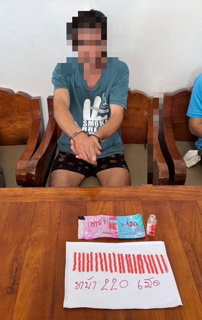 - รายที่ 4: จับกุมผู้ต้องหาพร้อมของกลางยาบ้า จำนวน 10 เม็ด