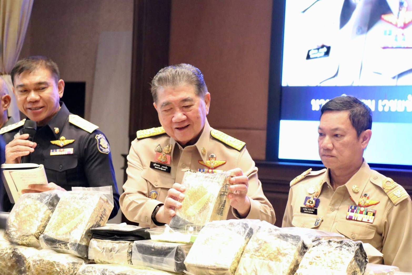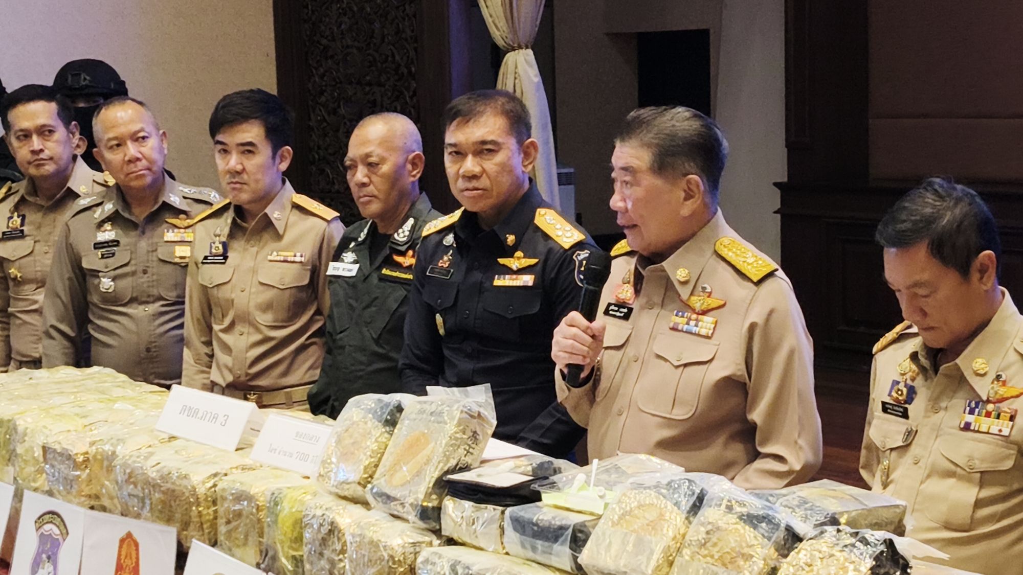 หลังจากนั้นนายภูมิธรรมฯ ได้ร่วมแถลงข่าวยึด ‘ไอซ์’ 700 กิโลกรัม อ.เชียงดาว จ.เชียงใหม่ โดยการจับกุมครั้งนี้เป็นผลจากการทำงานเชิงรุกตามนโยบายปราบปรามยาเสพติดของรัฐบาล โดยเมื่อวันที่ 16 สิงหาคม 2568 เจ้าหน้าที่ตำรวจตระเวนชายแดนภาค 3 ได้รับแจ้งเบาะแสสำคัญว่าจะมีขบวนการค้ายาเสพติดลำเลียงยาเสพติดจำนวนมหาศาลเข้ามาในพื้นที่ตอนในของประเทศ จึงได้สนธิกำลังกับตำรวจ ทหาร และฝ่ายปกครองในพื้นที่ เพื่อวางแผนสกัดกั้นอย่างรัดกุม จนกระทั่งเวลาประมาณ 02.00 น. ของวันที่ 18 สิงหาคม 2568 ชุดปฏิบัติการได้พบรถยนต์ต้องสงสัยขับออกมาจากสวนในหมู่บ้านป่าบงงาม ต.เมืองนะ อ.เชียงดาว จึงเข้าควบคุมรถและจับกุมตัวนายดำรัส อายุ 33 ปี ผู้ขับขี่ได้สำเร็จ ขณะเดียวกัน เจ้าหน้าที่อีกชุดเข้าตรวจสอบในสวนที่ได้รับแจ้ง พบกระสอบบรรจุยาเสพติดจำนวน 28 กระสอบ ซุกซ่อนอยู่ในกอต้นกล้วย ซึ่งถูกอำพรางด้วยผ้าใบสีดำและกิ่งไม้เพื่อหลีกเลี่ยงการตรวจจับ ของกลางทั้งหมดเป็นยาไอซ์รวมกว่า 700 กิโลกรัม นอกจากนี้ ยังพบรถจักรยานยนต์อีก 2 คันจอดทิ้งไว้ในบริเวณใกล้เคียง โดยนายภูมิธรรมได้ลงมายังจุดแถลงข่าวด้านล่างเพื่อชื่นชมเจ้าหน้าที่ตำรวจตระเวนชายแดนภาค 3 ชุดจับกุมที่ปฏิบัติหน้าที่อย่างเข้มแข็งจนมีผลงานชิ้นใหญ่ในครั้งนี้