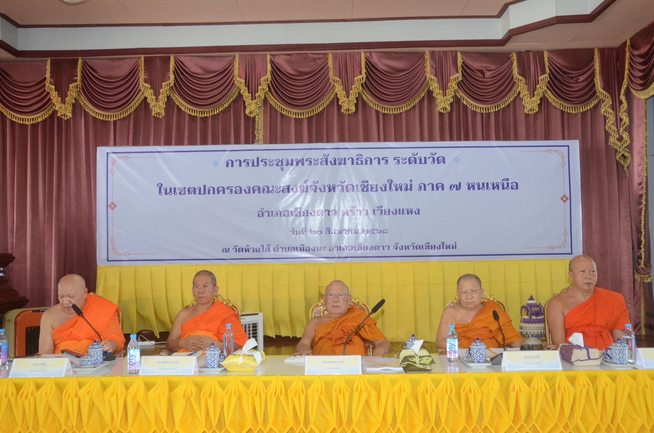 วันพุธที่ 20 สิงหาคม 2568 พระเทพมังคลาจารย์ เจ้าคณะจังหวัดเชียงใหม่ พร้อมด้วยรองเจ้าคณะจังหวัดเชียงใหม่ทั้ง 5 รูป ประชุมพระสังฆาธิการสัญจร ระดับวัด ในเขตปกครองคณะสงฆ์จังหวัดเชียงใหม่ ภาค 7 หนเหนือ ระดับ เจ้าอาวาส, รองเจ้าอาวาส, ผู้ช่วยเจ้าอาวาส พระเลขานุการทุกตำแหน่ง ตามมติมหาเถรสมาคม ที่ 143/2546 ประจำปีพุทธศักราช 2568 มีอำเภอเชียงดาว พร้าว และอำเภอวียงแหง มอบตราตั้งเจ้าอาวาส ผู้ช่วยเจ้าอาวาส นางอารีย์ พันธุ์จันทร์ ผู้อำนวยการสำนักงานพระพุทธศาสนาจังหวัดเชียงใหม่ มอบหมายให้เจ้าหหน้าที่ เข้าร่วมประชุม ณ วัดห้วยไส้ ตำบลเมืองนะ อำเภอเชียงดาว จังหวัดเชียงใหม่.