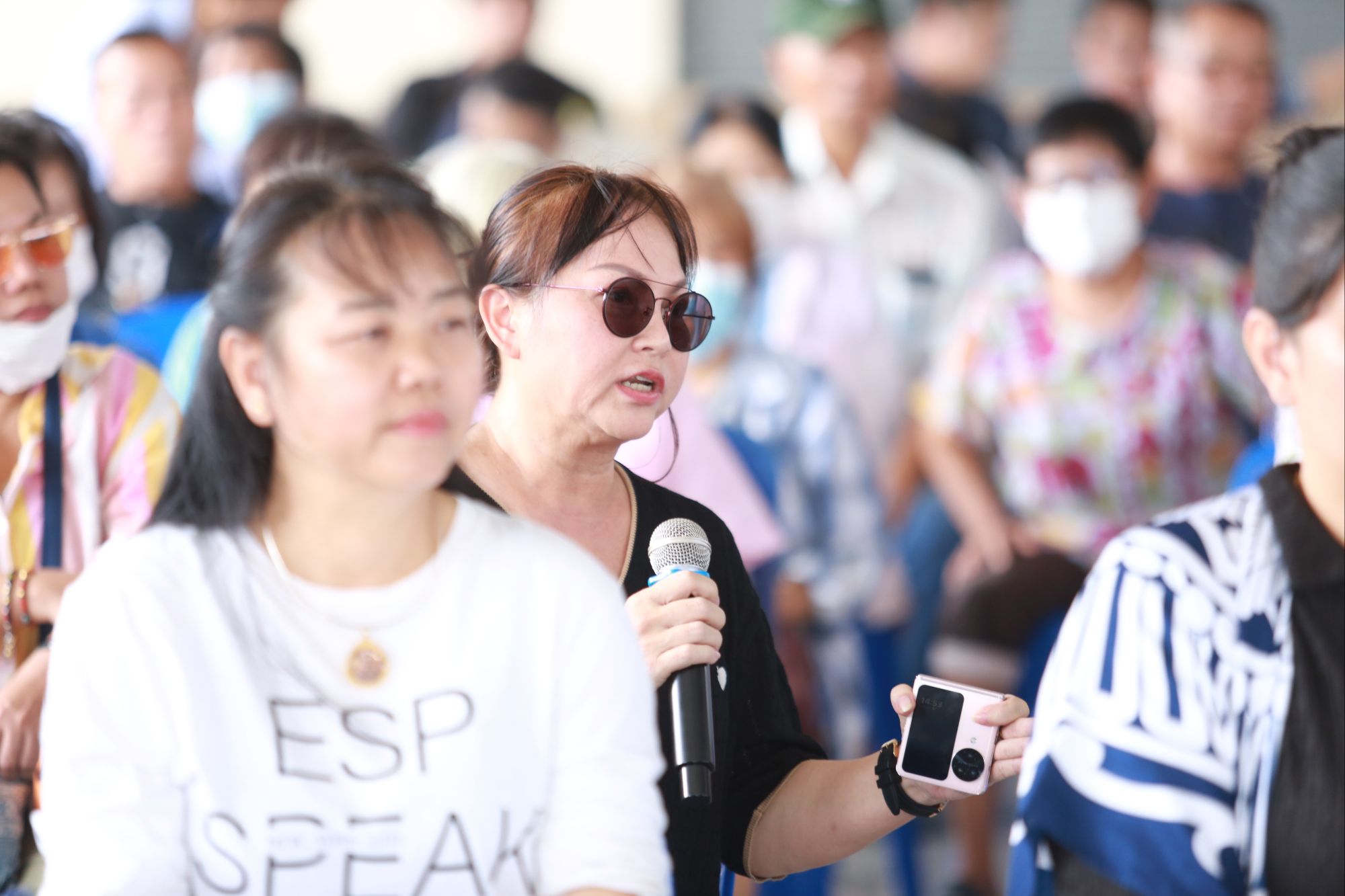 ในการประชุมได้มีนายภูริชญ์ คำมงคล ประชาชนหมู่ 5 และนายสายัณห์ คำมงคล ประธานกองทุนหมู่บ้านปากกองหมูที่ 5 ได้ยื่นหนังสือขอคัดค้านโครงการฯ โดยให้เหตุผลว่าที่ทำการกองทุนหมู่บ้านปากกองหมู่ที่ 5 และบ้านพักที่อยู่อาศัยของสมาชิกซึ่งอยู่ในแนวถนนโครงการจะได้รับผลกระทบทั้งทางตรงและทางอ้อม จึงไม่เห็นด้วยกับการพัฒนาโครงการ รวมทั้งมีความกังวลเรื่องผลกระทบจากการก่อสร้างในด้านต่าง ๆ เช่น ความปลอดภัย มลภาวะ กลิ่น เสียง ฝุ่น รวมทั้งผลกระทบต่อวิถีชีวิตชุมชน ทัศนียภาพของถนนสายต้นยางนาที่จะนำไปขึ้นทะเบียนมรดกโลก และมีความกังวลเรื่องการเวนคืนที่ดินและสร้างที่อยู่อาศัยใหม่จะทำให้เกิดภาระหนี้สิ้นใหม่ของผู้สูงอายุที่ได้รับผลกระทบ