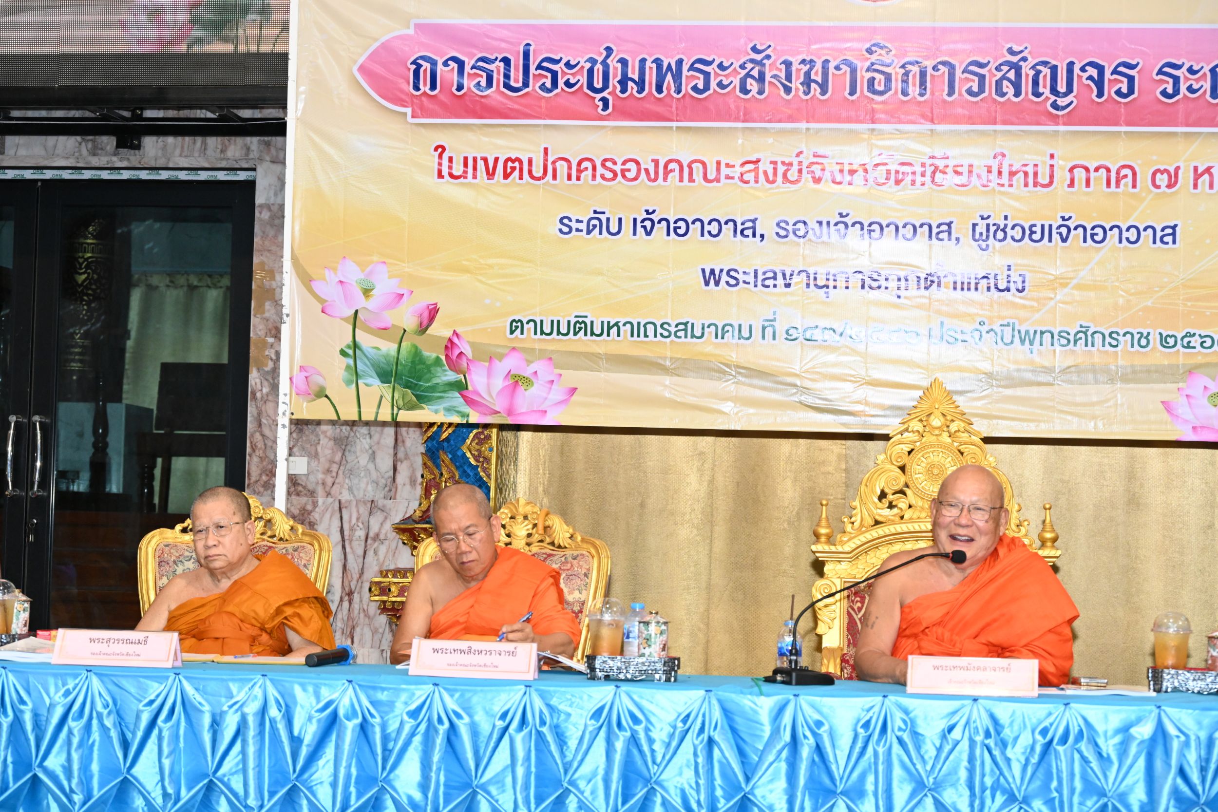 วันอาทิตย์ที่ 24 สิงหาคม 2568 พระเทพมังคลาจารย์ เจ้าคณะจังหวัดเชียงใหม่ พร้อมด้วยรองเจ้าคณะจังหวัดเชียงใหม่ทั้ง 5 รูป ประชุมพระสังฆาธิการสัญจร ระดับวัด ในเขตปกครองคณะสงฆ์จังหวัดเชียงใหม่ ภาค 7 หนเหนือ ระดับ เจ้าอาวาส, รองเจ้าอาวาส, ผู้ช่วยเจ้าอาวาส พระเลขานุการทุกตำแหน่ง ตามมติมหาเถรสมาคม ที่ 143/2568 ประจำปีพุทธศักราช 2568 มีอำเภอแม่ริม แม่แตง และอำเภอสันทราย มอบตราตั้งเจ้าอาวาส ผู้ช่วยเจ้าอาวาส นางอารีย์ พันธุ์จันทร์ ผู้อำนวยการสำนักงานพระพุทธศาสนาจังหวัดเชียงใหม่ มอบหมายให้เจ้าหหน้าที่ เข้าร่วมประชุม ณ วัดลัฎฐิวัน พระนอนขอนตาล ตำบลริมใต้ อำเภอแม่ริม จังหวัดเชียงใหม่.