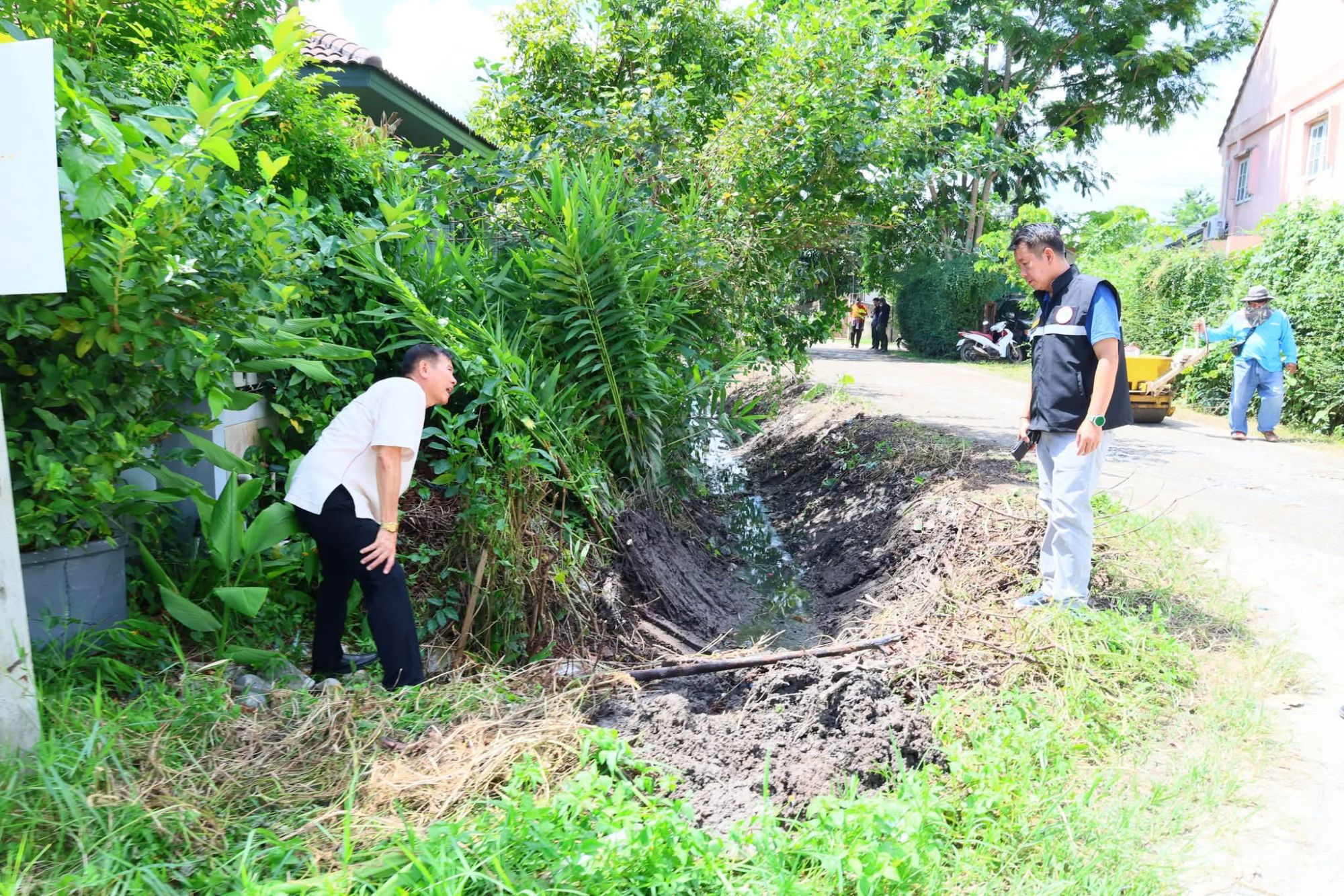 ทม.ดอนแก้ว ลงพื้นที่ดำเนินการติดตามการขุดลอกคูน้ำเพื่อป้องกันน้ำท่วมขังซึ่งอาจก่อให้เกิดความเสียหายของประชาชนในอนาคต