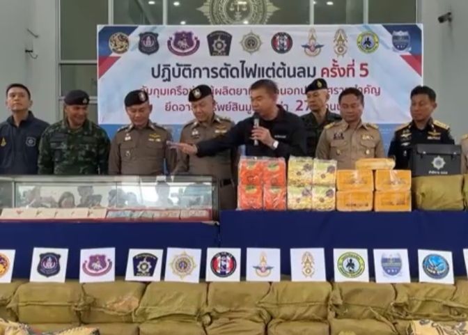 เลขาธิการ ป.ป.ส. แถลงผลปฏิบัติการ “ตัดไฟแต่ต้นลมครั้งที่ 5″ มุ่งทำลายเครือข่ายผู้ผลิตยาเสพติดนอกประเทศ บังคับใช้กฎหมายอย่างจริงจัง ต่อผู้ค้า/ผู้ลำเลียงในพื้นที่ชายแดนและตอนใน พร้อมติดตามยึดทรัพย์รวมกว่า 27 ล้านบาท