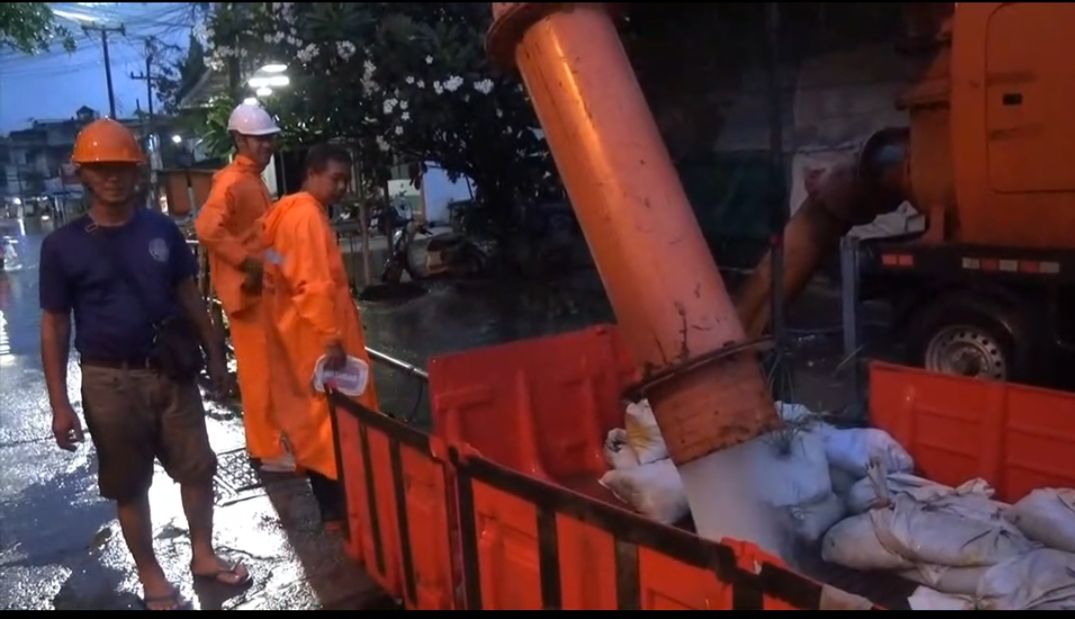 ขณะที่เทศบาลนครเชียงใหม่ ได้มีการติดตั้งเครื่องสูบน้ำขนาดใหญ่ ขนาดท่อ 14 นิ้ว บริเวณชุมชนกาดก้อม และหน้าร้านลาบต้นยาง ชุมชนศรีปิงเมือง เพื่อสูบระบายน้ำ ออกจากชุมชน แต่ก็ลดลงอย่างช้าๆเนื่องจากน้ำในคลองแม่ข่า มีระดับน้ำหนุนสูง ทำให้การระบายน้ำได้ช้า จนถึงกลางคืน ประชาชน ยังต้องเดิน ลุยน้ำเข้าออกชุมชน และต้องคอยเก็บขยะที่ลอยมากับน้ำ