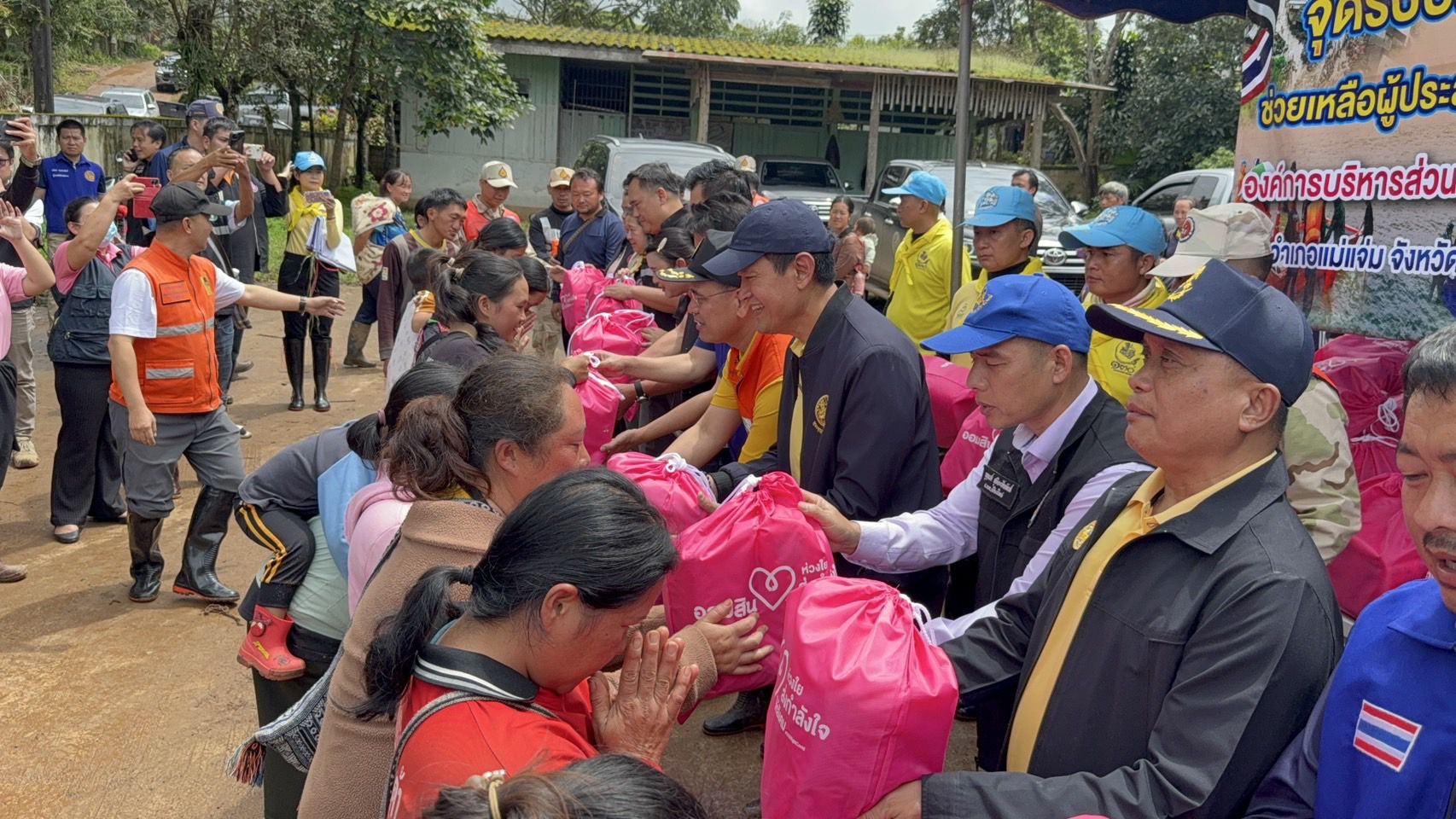 โอกาสนี้ ผู้ตรวจราชการกระทรวงมหาดไทย ประจำเขตตรวจราชการที่ 15 พร้อมด้วย รองผู้ว่าราชการจังหวัดเชียงใหม่ และคณะ ได้ร่วมกันมอบถุงยังชีพให้กับผู้ประสบภัย เพื่อนำไปใช้ประโยชน์ในชีวิตประจำวัน เป็นการบรรเทาความเดือดร้อนในเบื้องต้น พร้อมทั้งนำสารกำลังใจและความห่วงใยจากผู้บริหารระดับสูงของกระทรวงมหาดไทยมาส่งต่อให้กับครอบครัวผู้เสียชีวิต และผู้ประสบภัย เพื่อให้มีกำลังใจในการฝ่าฟันอุปสรรค และดำเนินชีวิตต่อไปได้.