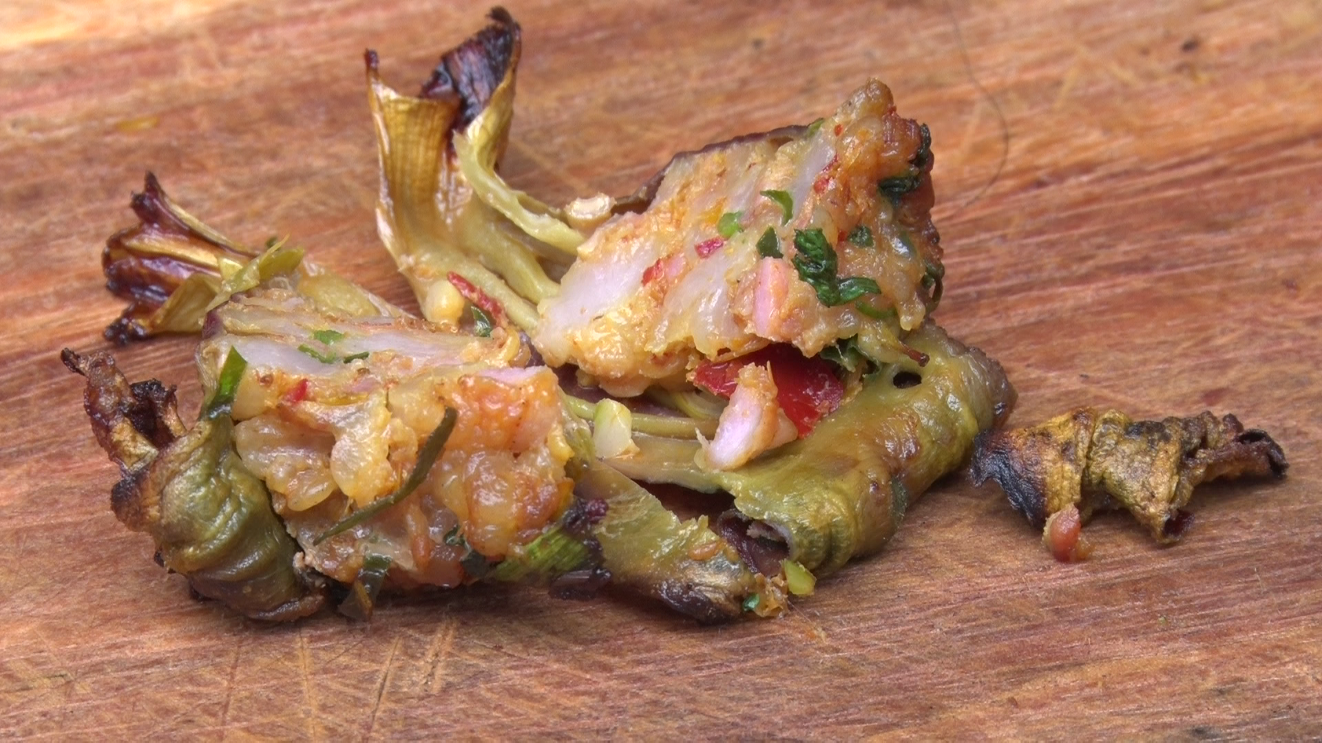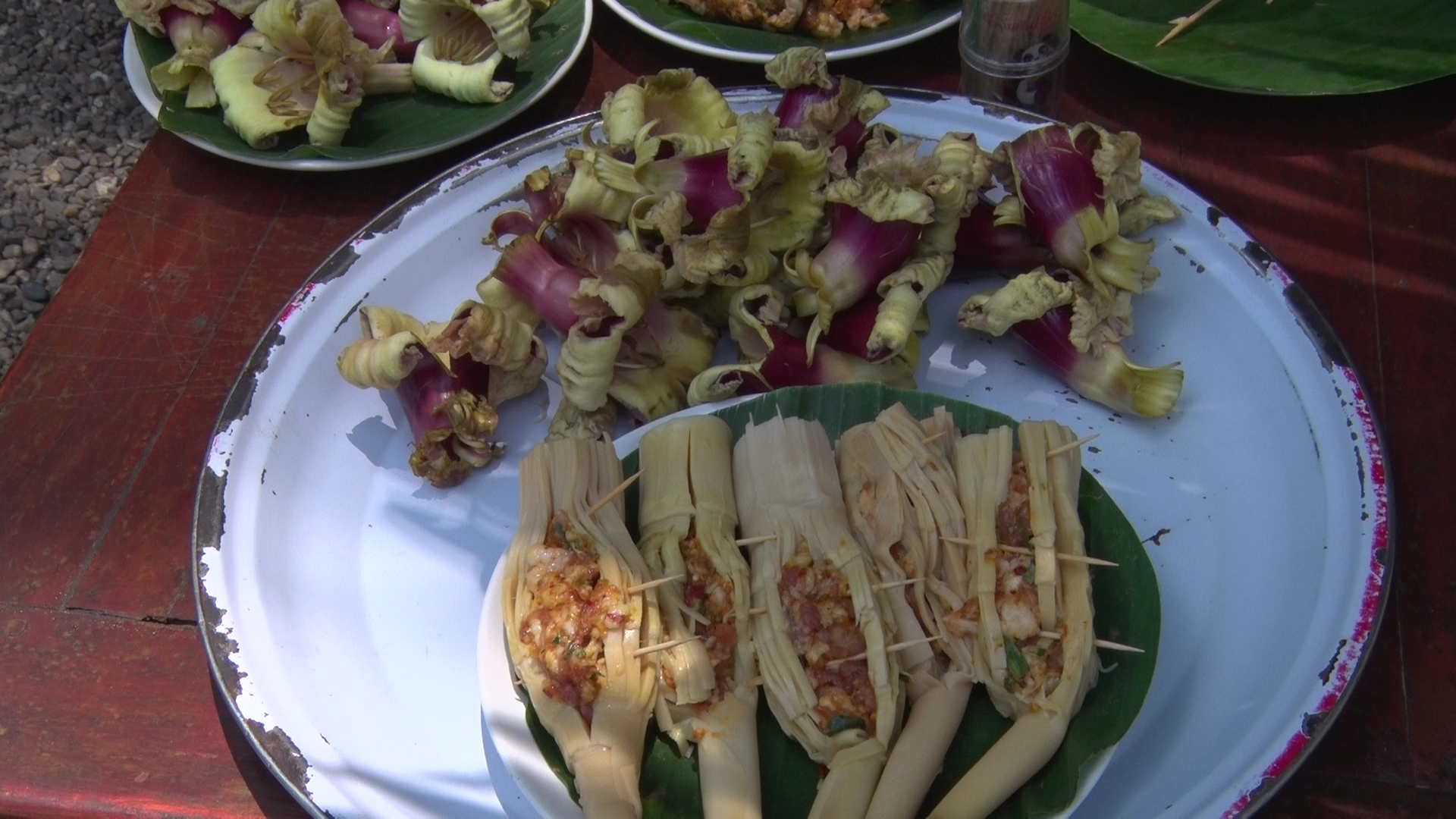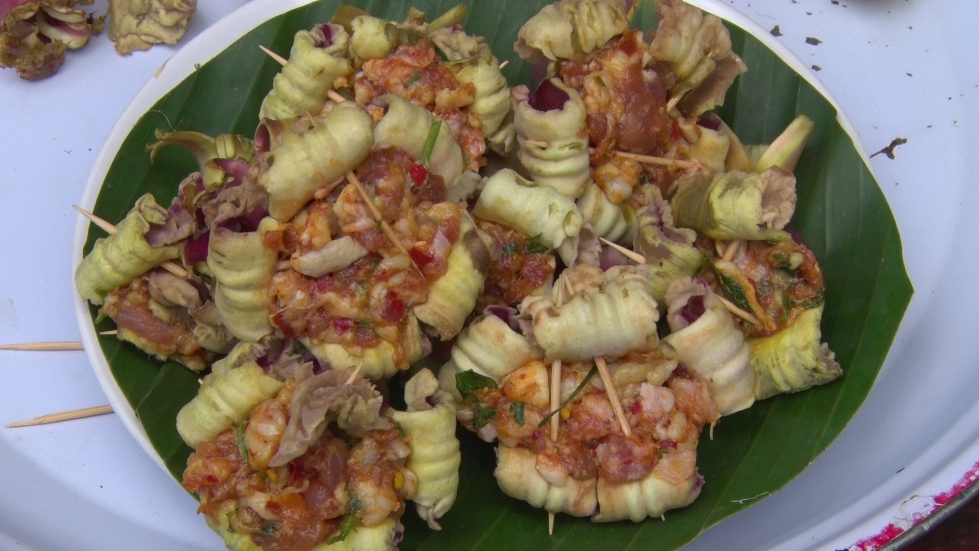เจ้าของร้านไส้อั่วบ้านอิฐ ต.ขี้เหล็ก อ.แม่แตง ประยุกต์นำดอกลิ้นฟ้าสมุนไพรพื้นบ้าน (ดอกบ่าลิดไม้) และหน่อไม้ ที่กำลังออกในช่วงฤดูฝน มาทำเป็นดอกลิ้นฟ้าอั่วและหน่อไม้อั่ว เตรียมจำหน่ายในงานเทศกาลท่องเที่ยวเชิงอาหารพื้นบ้านหรือ ข่วงไส้อั่ว กาดหมั่วดงป่าลัน ที่บ้านดงป่าลัน ต.ขี้เหล็ก อ.แม่แตง ซึ่งจะจัดช่วงฤดูหนาวที่จะถึงนี้