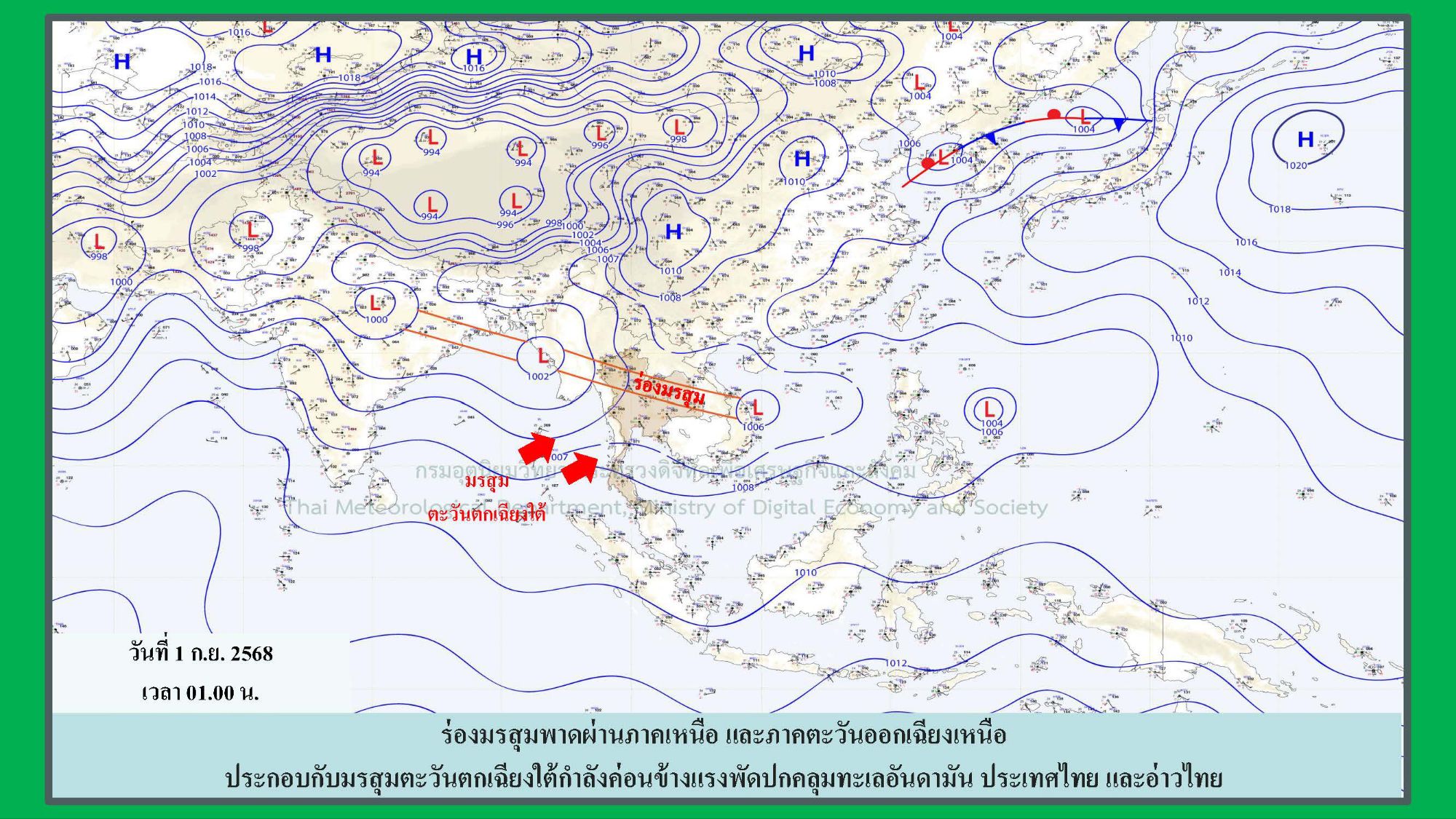 ที่สำนักงานศูนย์อุตุนิยมวิทยาภาคเหนือ จ.เชียงใหม่ ดร.สุกฤษฎิ์ เกิดแสง ผู้อำนวยการศูนย์อุตุนิยมวิทยาภาคเหนือ เปิดเผยถึงการคาดการณ์ลักษณะอากาศช่วงฝนที่ผ่านมาถึงช่วงท้ายฤดูฝน ว่า ที่ผ่านมาในช่วงเดือนสิงหาคมฝนในช่วงต้นเดือนน้อยกว่าค่าปกติเยอะมาก แทบจะไม่มีฝน พอครึ่งเดือนหลังฝนเยอะมาก มีพายุเคลื่อนเข้ามาใกล้เคียงเชียงใหม่ 2 ลูก คือ พายุคาจิกิ กับ พายุหมอกฟ้า ซึ่งพายุทั้ง 2 ลูกก็ไม่ได้เข้าประเทศไทย แต่มีผลต่อร่องมรสุมที่พาดผ่านประเทศไทยมีกำลังแรงขึ้น ซึ่งช่วงที่ผ่านมาถึงเดือนสิงหาคมพบว่า ฝนสะสมสูงกว่าค่าปกติเยอะมาก โดยฝนตั้งแต่วันที่ 1 ม.ค. ถึงวันที่ 31 ส.ค. 2568 อยู่ที่ 1079 มม. สูงกว่าค่าปกติอยู่ที่ 34.4% (ฝนค่าปกติ 802.9 มม.) และสูงกว่าปี 2567 ในช่วงเวลาเดียวกันมากถึง 104%