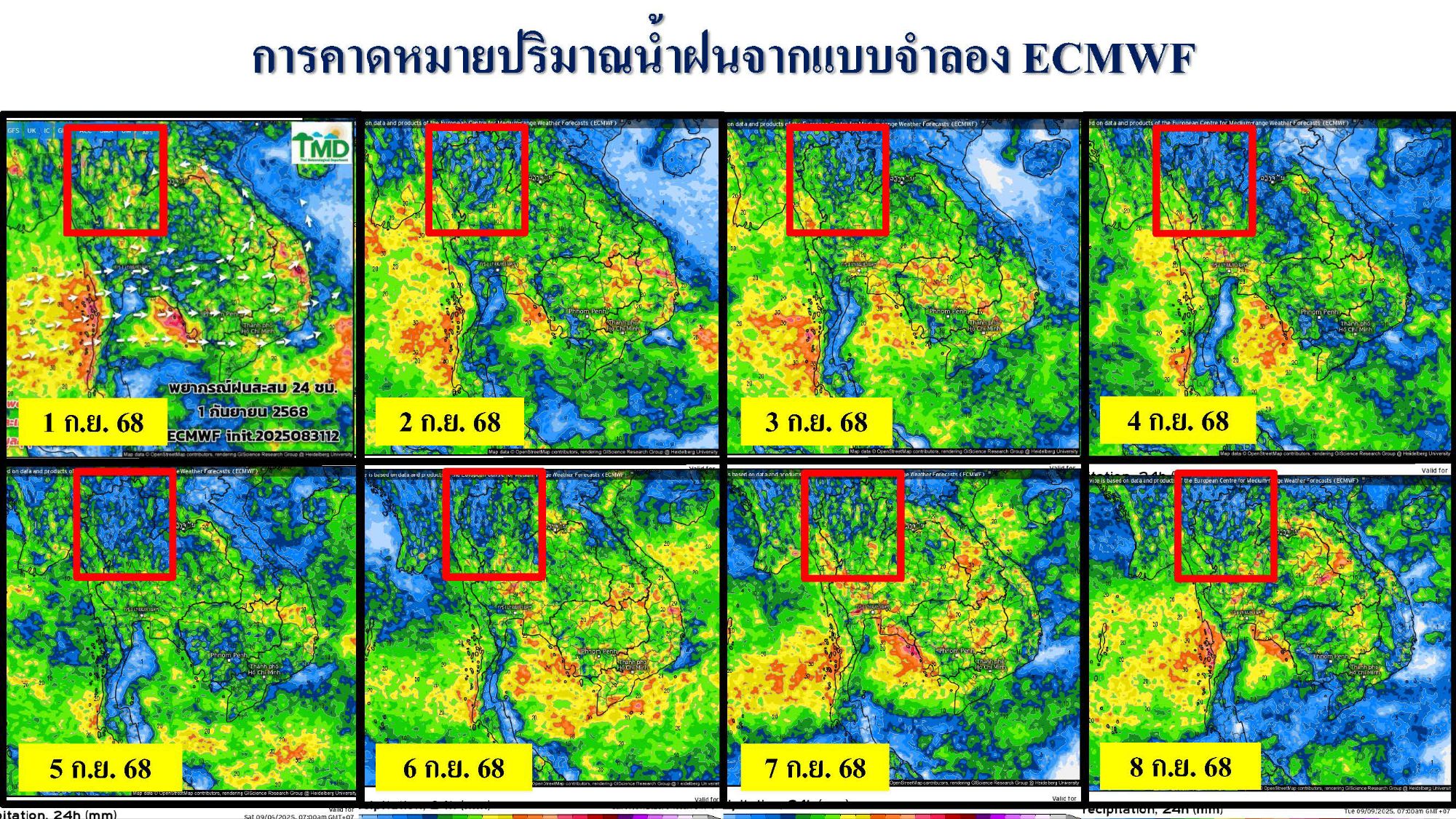 ดร.สุกฤษฎิ์ เกิดแสง ผู้อำนวยการศูนย์อุตุนิยมวิทยาภาคเหนือ กล่าวต่อว่า สำหรับคาดการณ์ฝนในเดือนกันยายน จะอยู่ในช่วง 190 – 230 มม. ซึ่งอยู่ในเกณฑ์ใกล้เคียงค่าปกติ หากเปรียบเทียบกับเดือนกันยายน 2567 ฝนจะอยู่ที่ 382.5 มม. ฝนจะมากกว่าค่าปกติเยอะมาก ซึ่งปีที่แล้วฝนตกเยอะมากในเดือนกันยายน