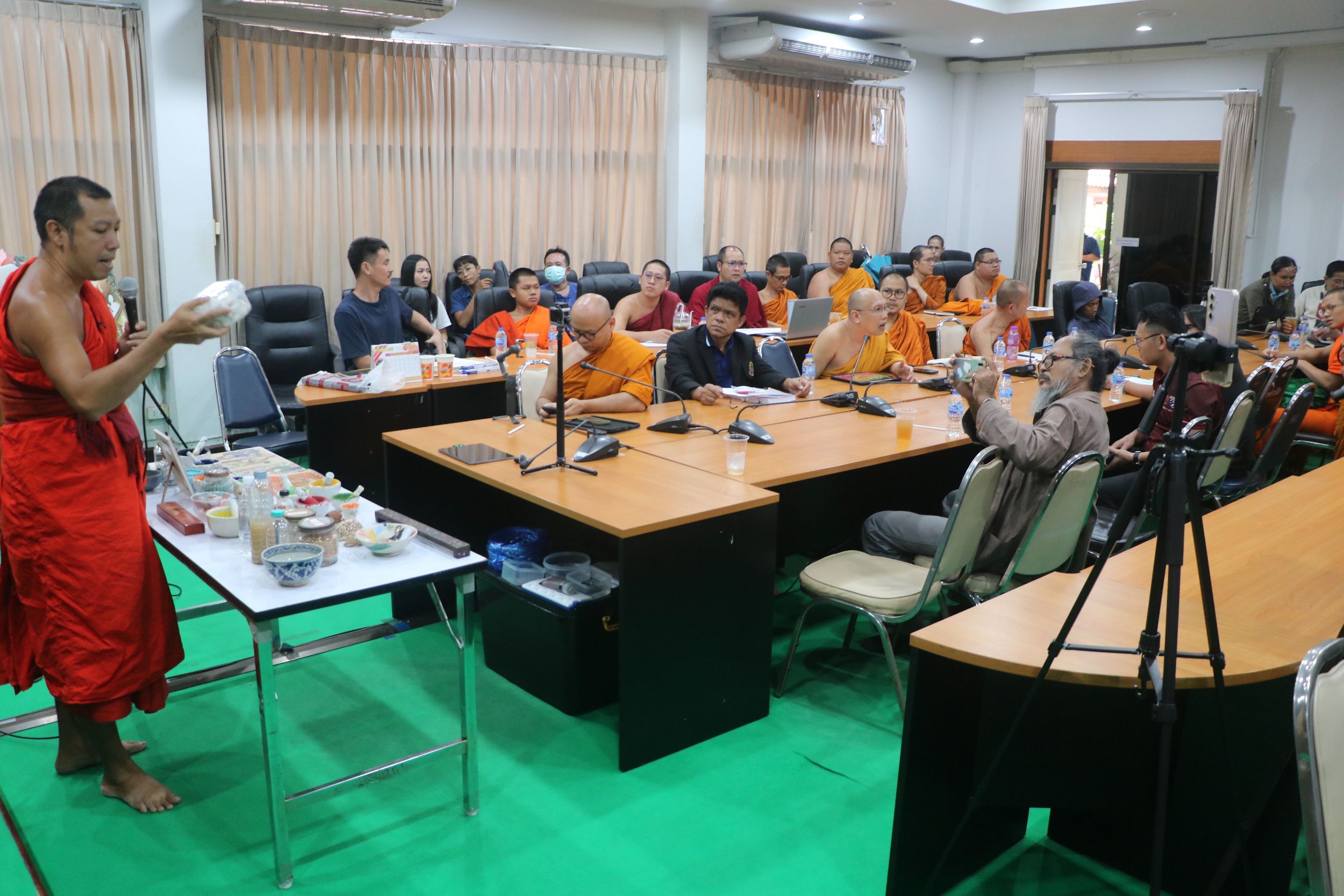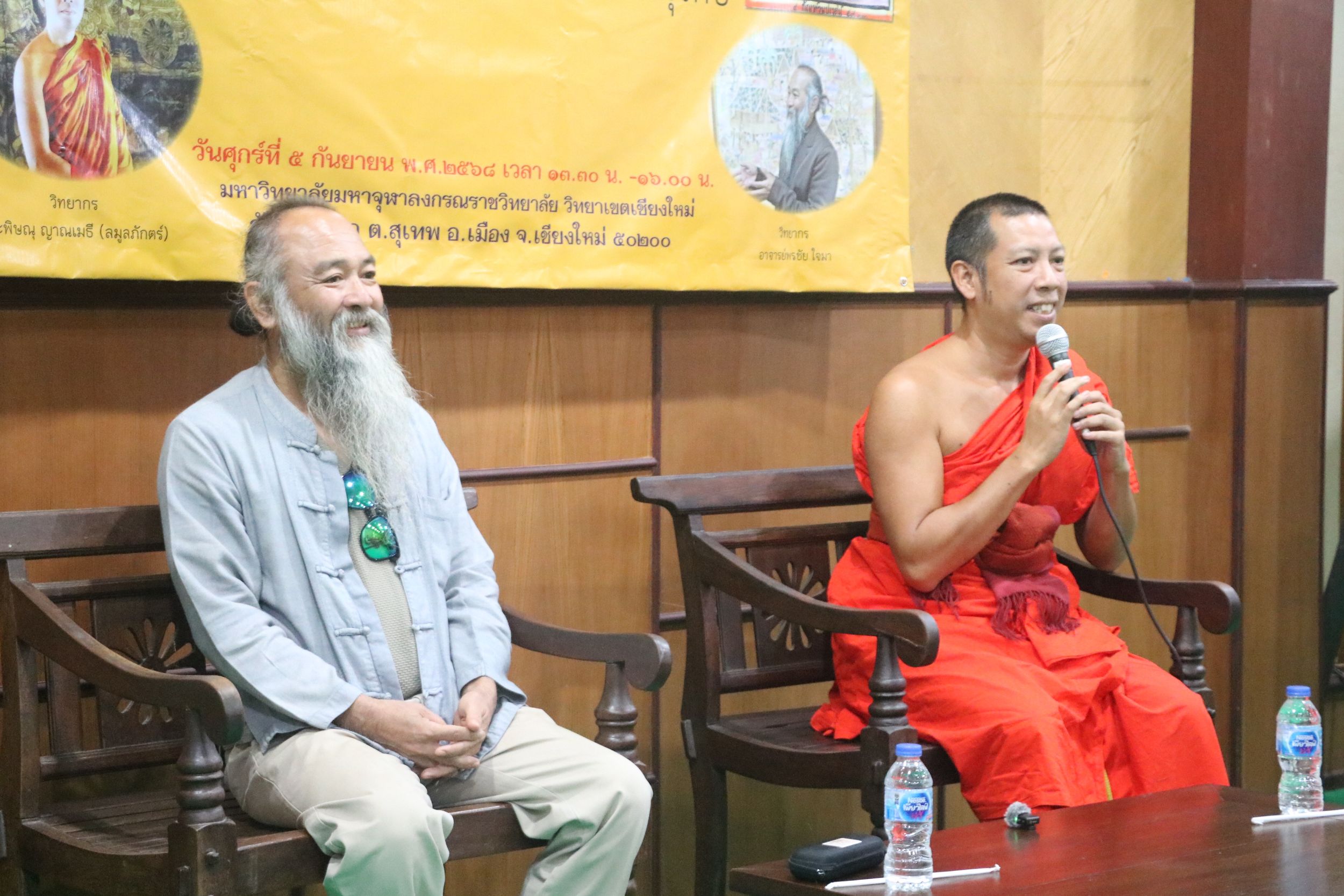 วันศุกรที่ 5 กันยายน 2568 เวลา 13.30 – 16.00 น. นิสิต หลักสูตรพุทธศาสตรมหาบัณฑิต สาขาวิชาพุทธศิลปกรรม รุ่นที่ ๔ ได้จัดโครงการจัดสัมมนาวิชาการพุทธศิลป์และการอนุรักษ์ ในรายวิชาสัมนาในงานพุทธศิลปกรรม หลักสูตรพุทธศาสตรมหาบัณฑิต สาขาวิชาพุทธศิลปกรรม โดยได้จัดสัมมนาวิชาการพุทธศิลปกรรม และการอนุรักษ์ เรื่อง “ช่างแต้ม” กับการฟื้นงานจิตรกรรมฝาผนังล้านนา โดยดร.พิสิฏฐ์ โคตรสุโพธิ์ ผู้อำนวยการศูนย์บัณฑิตศึกษา ได้กล่าวเปิดโครงการ และพระอธิวัฒน์ รตนวณฺโณ ดร. อาจารย์ประจำหลักสูตรพุทธศาสตรมหาบัณฑิต สาขาวิชาพุทธศิลปกรรม ได้กล่าวถึงวัตถุประสงค์ของโครงการ ในการนี้ได้รับเกียรติจาก อาจารย์พรชัย ใจมา ศิลปินศิลปาธร สาขาทัศนศิลป์ ด้านจิตรกรรม และ ศิลปินผู้ก่อตั้ง ผู้อำนวยการหอศิลป์เชียงใหม่อาร์ตมิวเซียม และพระพิษณุ ญาณเมธี หัวหน้ากลุ่มสาระการเรียนรู้ศิลปะ โรงเรียนนันทบุรีวิทยา จังหวัดน่าน เมตตาและให้เกีียรติมาเป็นวิทยากร ในการจัดสัมมนาในครั้งนี้ โดยมีนิสิตระดับปริญญาตรี ปริญญาโท และปริญญาเอก มจร วิทยาเขตเชียงใหม่ ร่วมถึงประชาชนผู้ที่สนใจ เข้าร่วมเป็นจำนวนมาก ณ ห้องประชุมศรีปริยัตยานุรักษ์ มหาวิทยาลัยมหาจุฬาลงกรณราชวิทยาลัย วิทยาเขตเชียงใหม่ ตำบลสุเทพ อำเภอเมืองเชียงใหม่ จังหวัดเชียงใหม่.