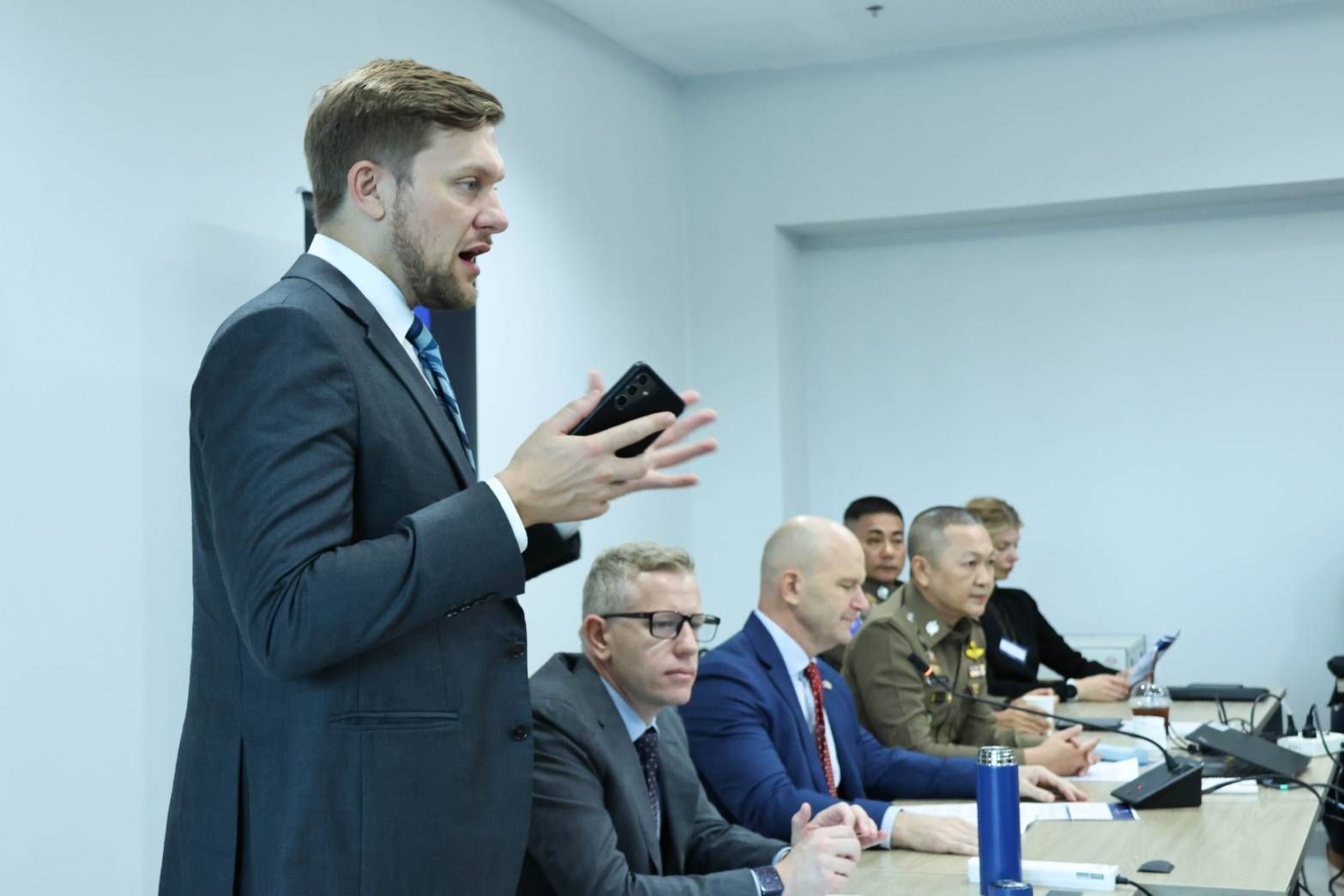วันที่ 8 กันยายน 2568 เวลา 09.00 น. พล.ต.อ.ธัชชัย ปิตะนีละบุตร จเรตำรวจแห่งชาติ ในฐานะผู้อำนวยการศูนย์ปราบปรามอาชญากรรมทางเทคโนโลยีสารสนเทศ สำนักงานตำรวจแห่งชาติ (ศปอส.ตร.) เป็นประธานเปิดการฝึกอบรม Technical Workshop on Building Online Investigations Capacity to Address Trafficking in Persons into Cyber-Scam Centers ณ ห้องประชุมศูนย์บริหารเหตุการณ์แก๊งคอลเซ็นเตอร์และค้ามนุษย์นานาชาติ (ศกค.) หรือ Warroom IAC สำนักงานตำรวจแห่งชาติ โดยมี Mr.David Thomas รองหัวหน้าคณะผู้แทน สถานเอกอัครราชทูตอังกฤษประจำประเทศไทย และ Mr.David Scott ผู้จัดการร่วม (ออสเตรเลีย) ของสำนักงานสนับสนุนระดับภูมิภาคของกระบวนการบาหลีว่าด้วยการลักลอบขนคน การค้ามนุษย์ และอาชญากรรมข้ามชาติที่เกี่ยวข้อง เข้าร่วมเปิดการฝึกอบรม