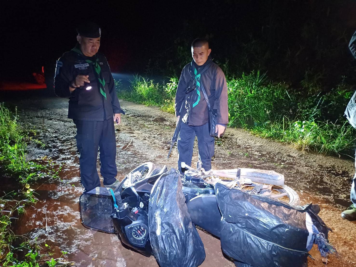 เมื่อวันที่ 11 กันยายน 2568 เวลา 18.30 น. กองร้อยทหารพรานที่ 3109 หน่วยเฉพาะกิจกรมทหารพรานที่ 31 ได้รับแจ้งจากแหล่งข่าว ว่าจะมีการลักลอบลำเลียงยาเสพติด เข้ามาในพื้นที่รับผิดชอบ จึงได้จัดกำลังพล 1 ชุดปฏิบัติการ ทำการตั้งจุดตรวจ/จุดสกัดชั่วคราว บริเวณ บ้านเจียงตาใส ตำบลแม่สลองนอก อำเภอแม่ฟ้าหลวง จังหวัดเชียงราย และเมื่อเวลา 21.30 น. ขณะปฏิบัติหน้าที่ได้ตรวจพบตรวจพบกลุ่มบุคคลขับขี่รถจักรยานยนต์ จำนวน 2 คัน มาจากเส้นทาง บ้านสามสูง ตำบลแม่สลองใน อำเภอแม่ฟ้าหลวงฯ เข้ามาบริเวณจุดตรวจ เจ้าหน้าที่ จึงแสดงตัวเพื่อขอทำการตรวจค้น แต่กลุ่มบุคคลดังกล่าว ได้ทิ้งรถจักรยานยนต์ และอาศัยความมืดหลบหนีไป จากการตรวจสอบบริเวณดังกล่าว ตรวจพบรถจักรยานยนต์ ยี่ห้อ ฮอนด้า รุ่น เวฟ ไม่ติดแผ่นป้ายทะเบียน จำนวน 2 คัน บรรทุกถุงดำ คันละ 2 ถุง ภายในเป็นกระสอบฟาง จำนวน 4 กระสอบ บรรจุยาเสพติด ให้โทษประเภท 1 (ไอซ์) จำนวน 3 กระสอบๆ ละ 25 ถุง และอีก 1 กระสอบ จำนวน 24 ถุง รวมทั้งสิ้น จำนวน 99 ถุง น้ำหนักถุงละประมาณ 1 กิโลกรัม รวมน้ำหนักทั้งสิ้น ประมาณ 99 กิโลกรัม ปัจจุบันหน่วยจึงได้จัดกำลังพล จำนวน 2 ชุดปฏิบัติการ เข้าควบคุมบริเวณพื้นที่เกิดเหตุไว้