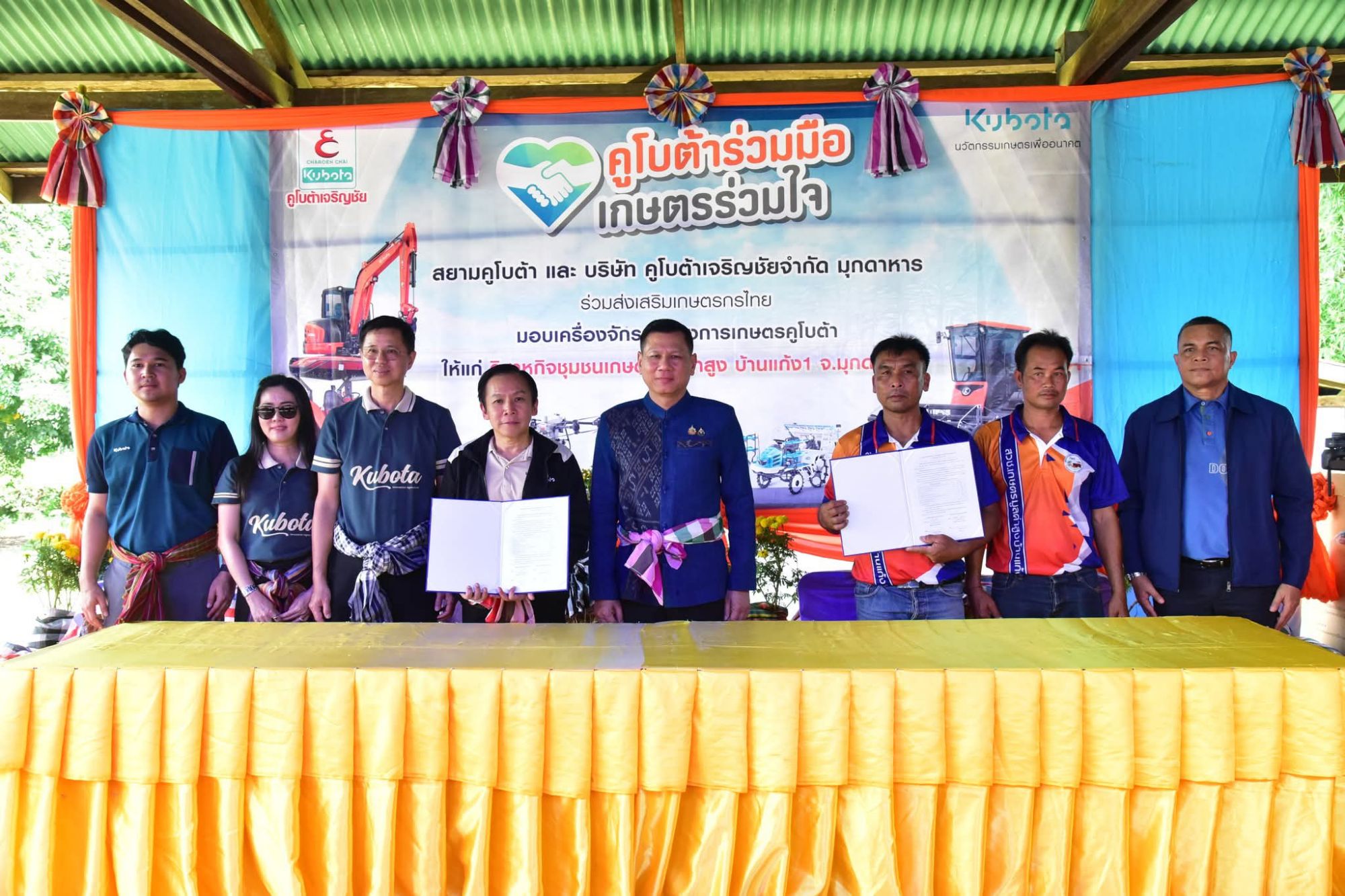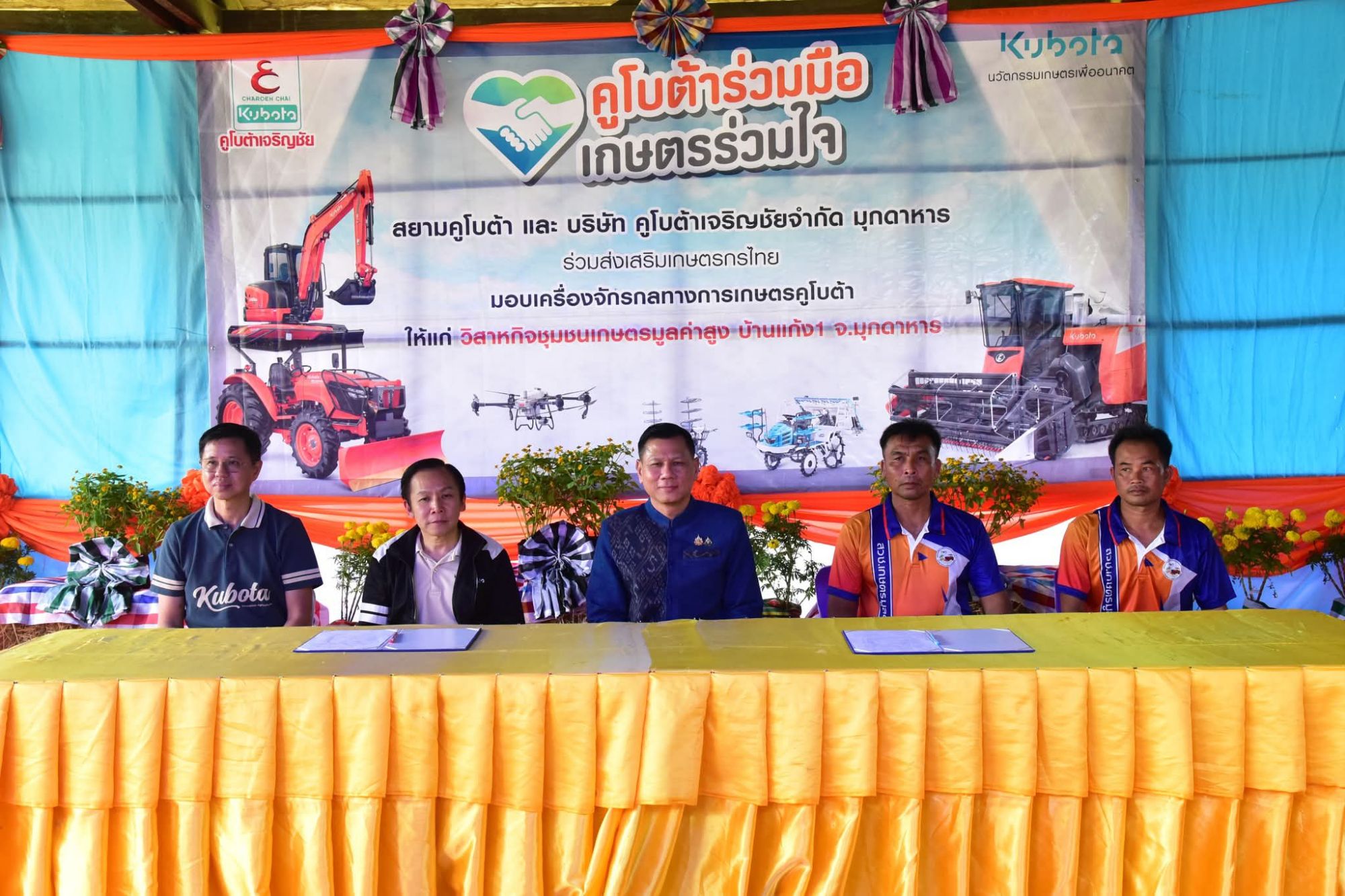 พิธีดังกล่าวเกิดจากความร่วมมือระหว่างสยามคูโบต้า และบริษัท คูโบต้าเจริญชัย จำกัด มุกดาหาร ภายใต้โครงการ “คูโบต้าร่วมมือ เกษตรร่วมใจ” โดยได้มอบเครื่องจักรกลการเกษตรมูลค่ารวมกว่า 1 ล้านบาท ได้แก่ รถไถคูโบต้าและโดรนเพื่อการเกษตร พร้อมกันนี้ บริษัท พรีเมียร์ควอลิตี้สตาร์ช จำกัด (มหาชน) ได้ร่วมมอบกล้าไม้ให้แก่เกษตรกรในกลุ่มวิสาหกิจชุมชน เพื่อใช้ในการปลูกและอนุรักษ์สิ่งแวดล้อม