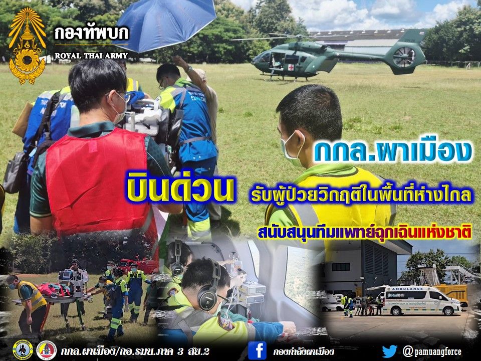 กกล.ผาเมือง ช่วยชีวิตฉุกเฉิน! เฮลิคอปเตอร์บินด่วนรับผู้ป่วยวิกฤต