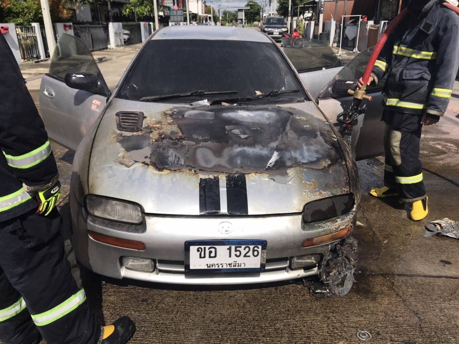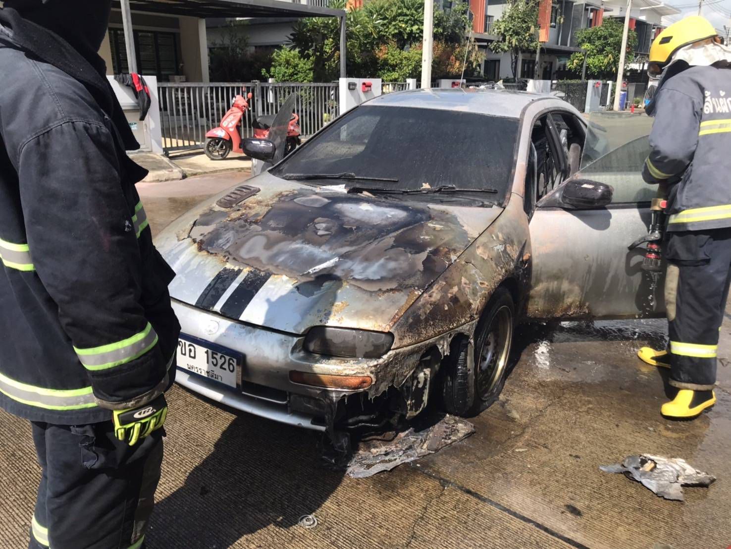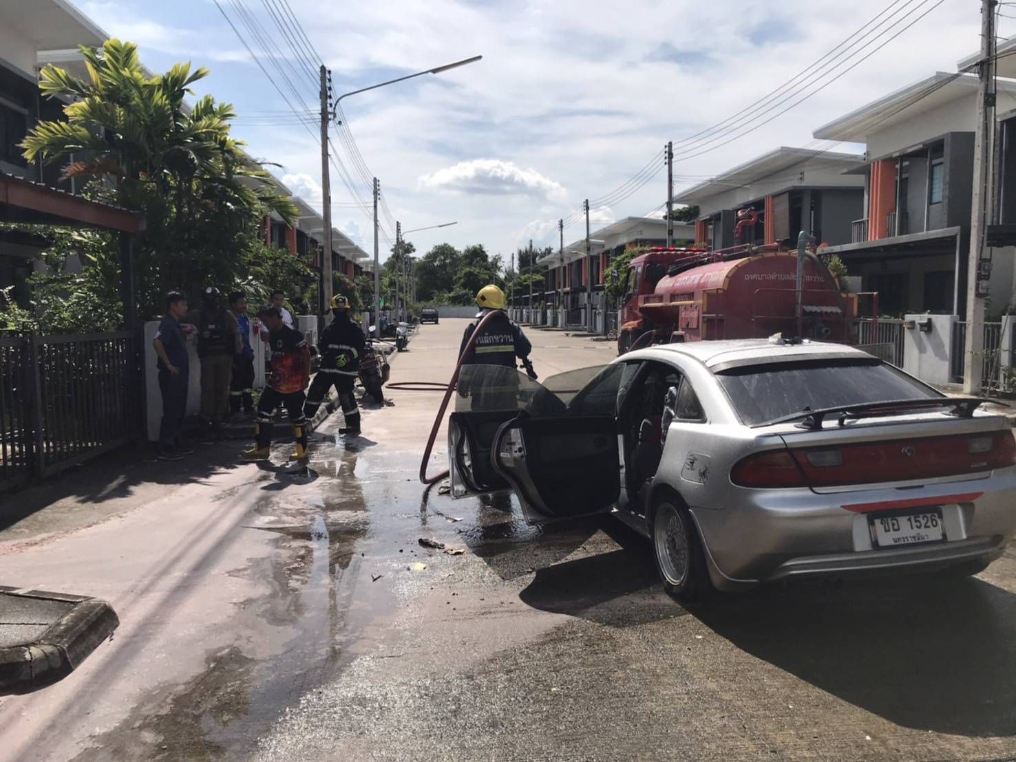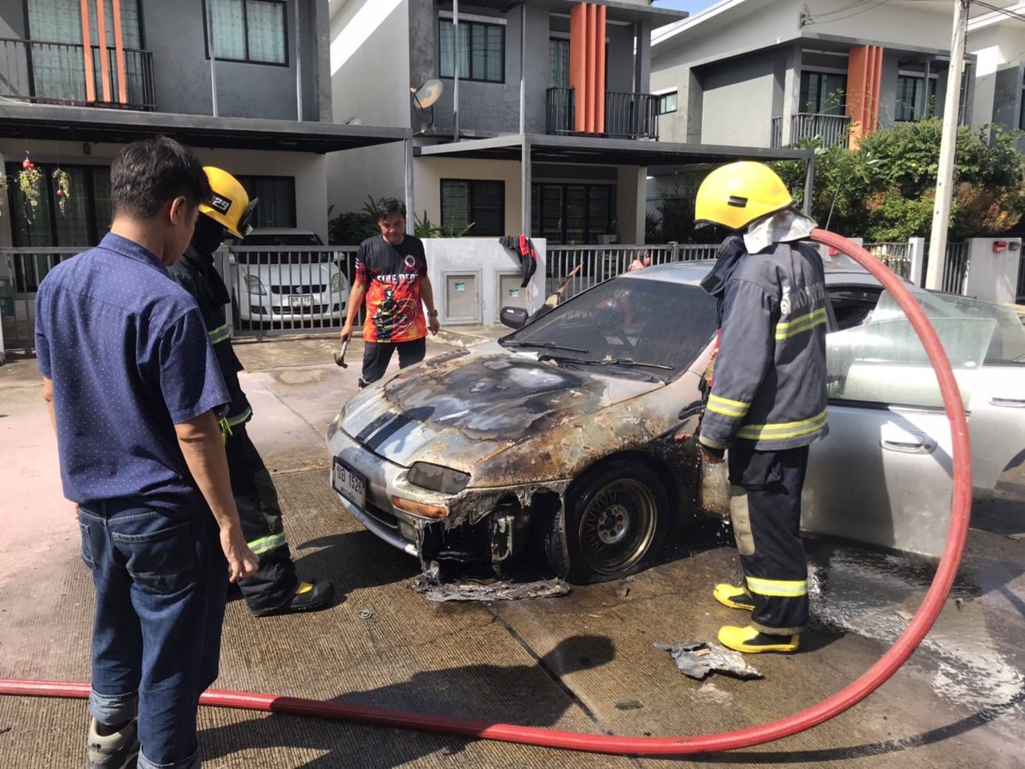 ไฟไหม้รถเก๋งกลางหมู่บ้านปาล์มการ์เด้น 5 โชคดีไร้เจ็บ