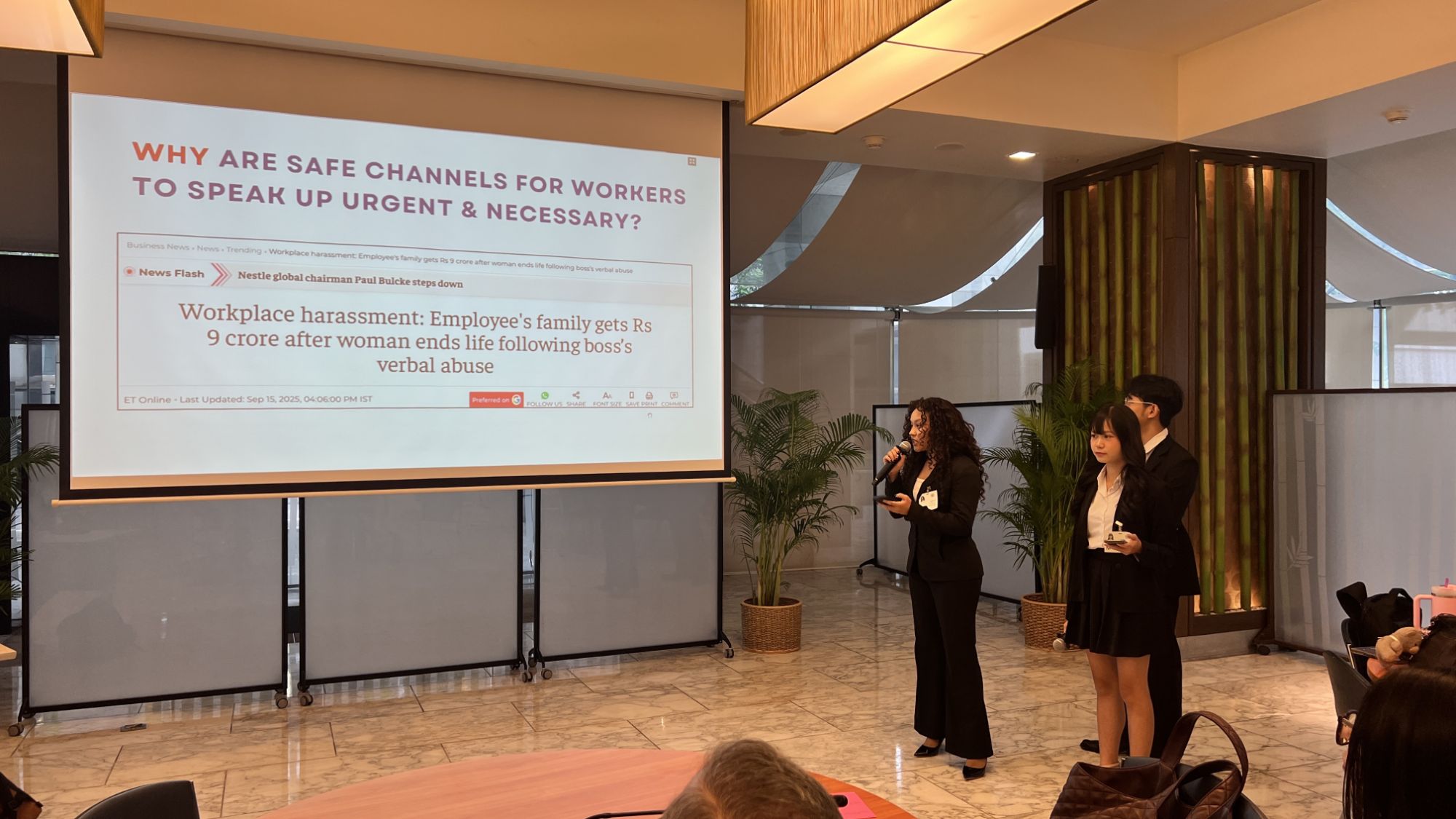ทั้งนี้ ทีม Work Echo จากคณะบริหารธุรกิจ มหาวิทยาลัยเชียงใหม่ สามารถคว้ารางวัลชนะเลิศในหัวข้อ Labour Rights & DEI จากผลงาน “Work Echo” ซึ่งนำเสนอระบบ Worker Voice ที่เปิดโอกาสให้แรงงานสามารถรายงานปัญหาได้อย่างปลอดภัย พร้อมระบบ Feedback Loop ที่ติดตามการแก้ไขอย่างโปร่งใส โดยจุดเด่นของนวัตกรรมนี้คือการผสานความปลอดภัยของแรงงาน ความโปร่งใสของข้อมูล และความยั่งยืนทางธุรกิจได้อย่างลงตัว จนได้รับการยกย่องจากผู้เชี่ยวชาญระดับนานาชาติ